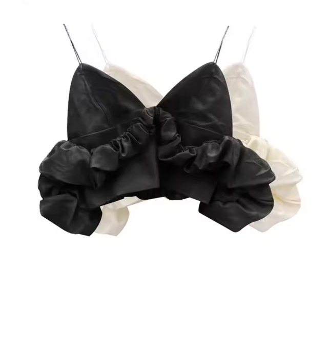 フリルリボンデザインに、調整可能な肩紐もリボンが華やかに。 インナーにはブラウスやTシャツを重ねてスタイリングをお楽しみ頂けるトップスです。 サイズ バスト 72-118cm 素材 コットン ポリエステル