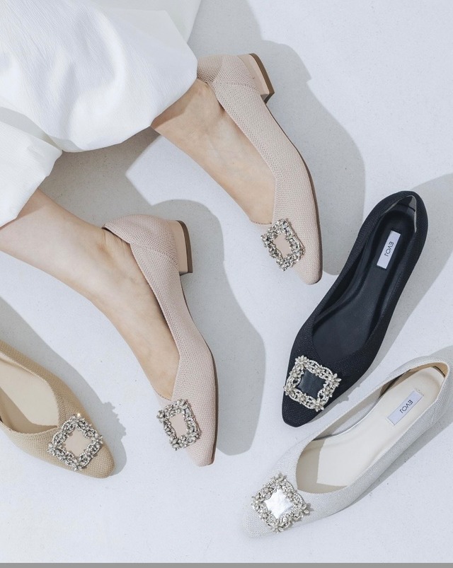 大人気のニット素材を使用したパンプスに新デザイン登場!まるでアクセサリーのようなフラワービジューが華やかな足元を演出してくれます。伸縮性に優れたニット素材は、幅広・外反母趾でお悩みの方でも挑戦しやすく、病みつきなるソフトな履き心地!滑りにくいソールと脱げにくいよう踵にクッション付きなのも嬉しいポイント◎もちもちの中敷きが足裏をしっかり支えてくれて、普段使いはもちろん通勤通学や立ち仕事の方にもおすすめです!