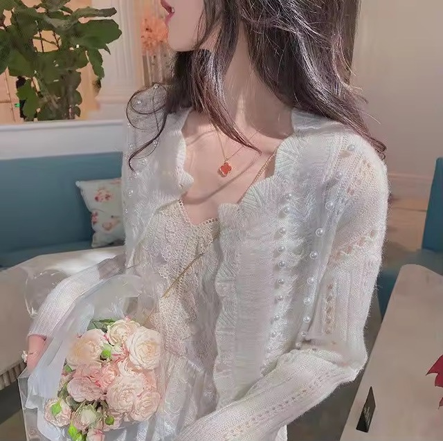 スカラップパールニットカーディガン(一ヶ月程でお届け)