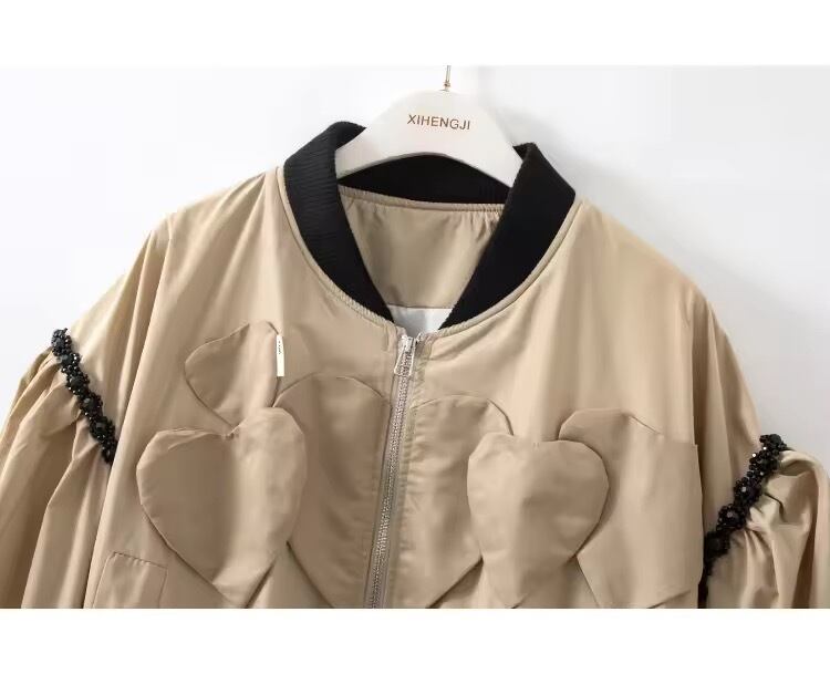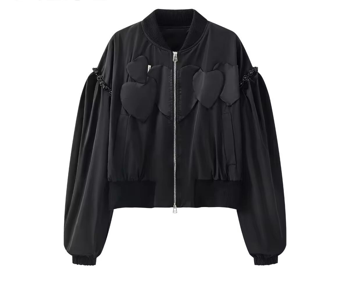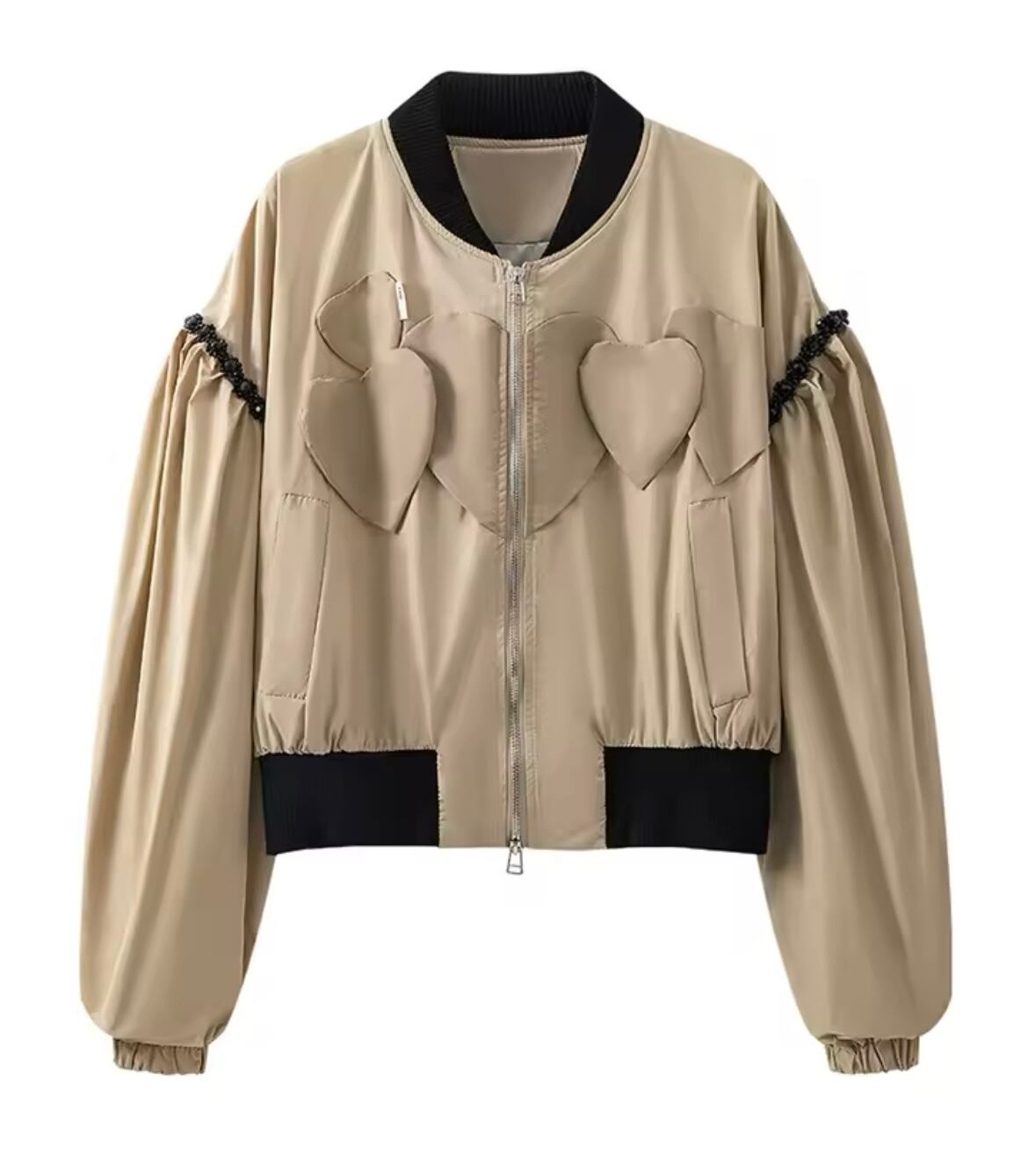 カジュアルなデニム合わせにもハートが映えるアウターです。