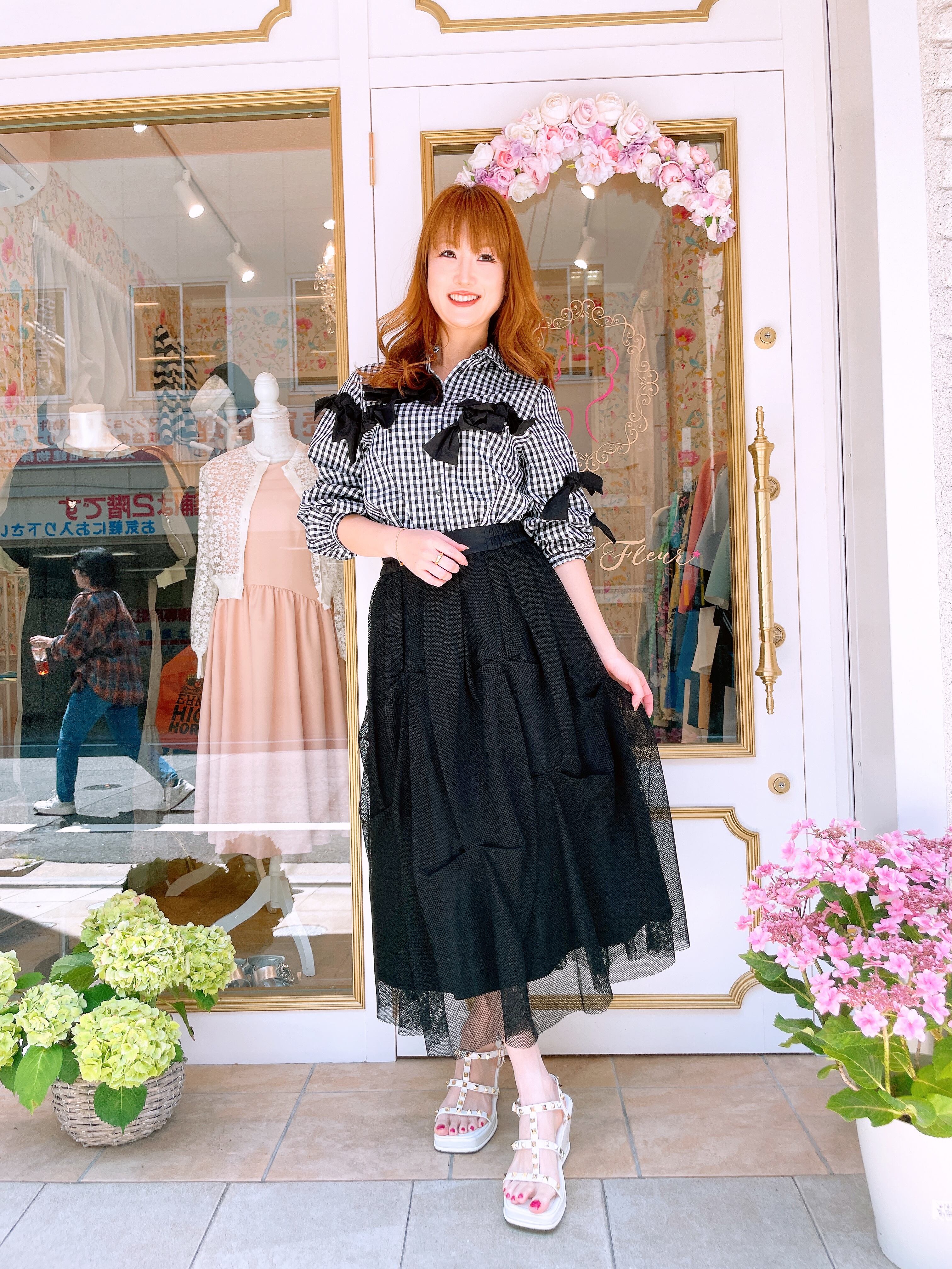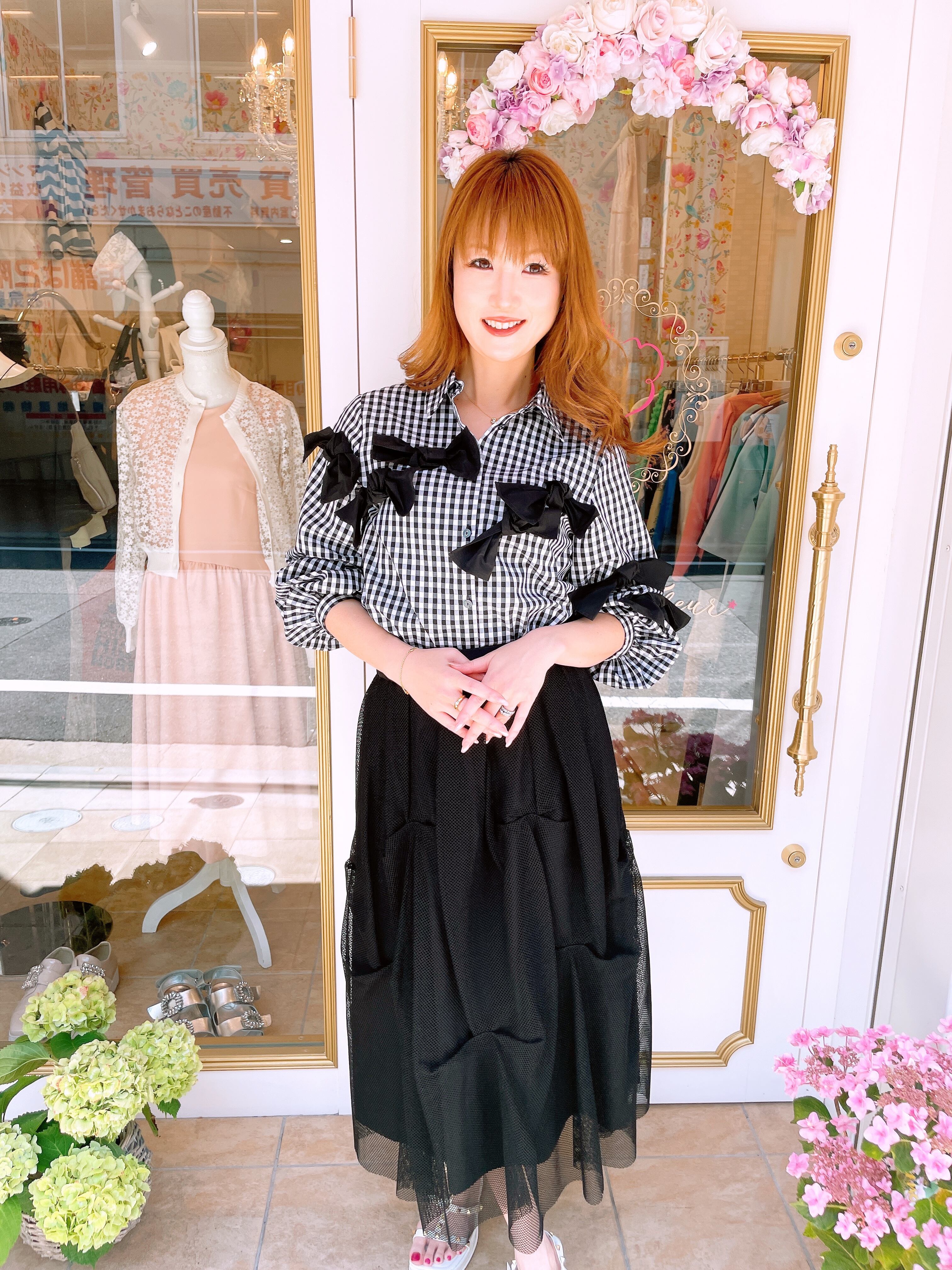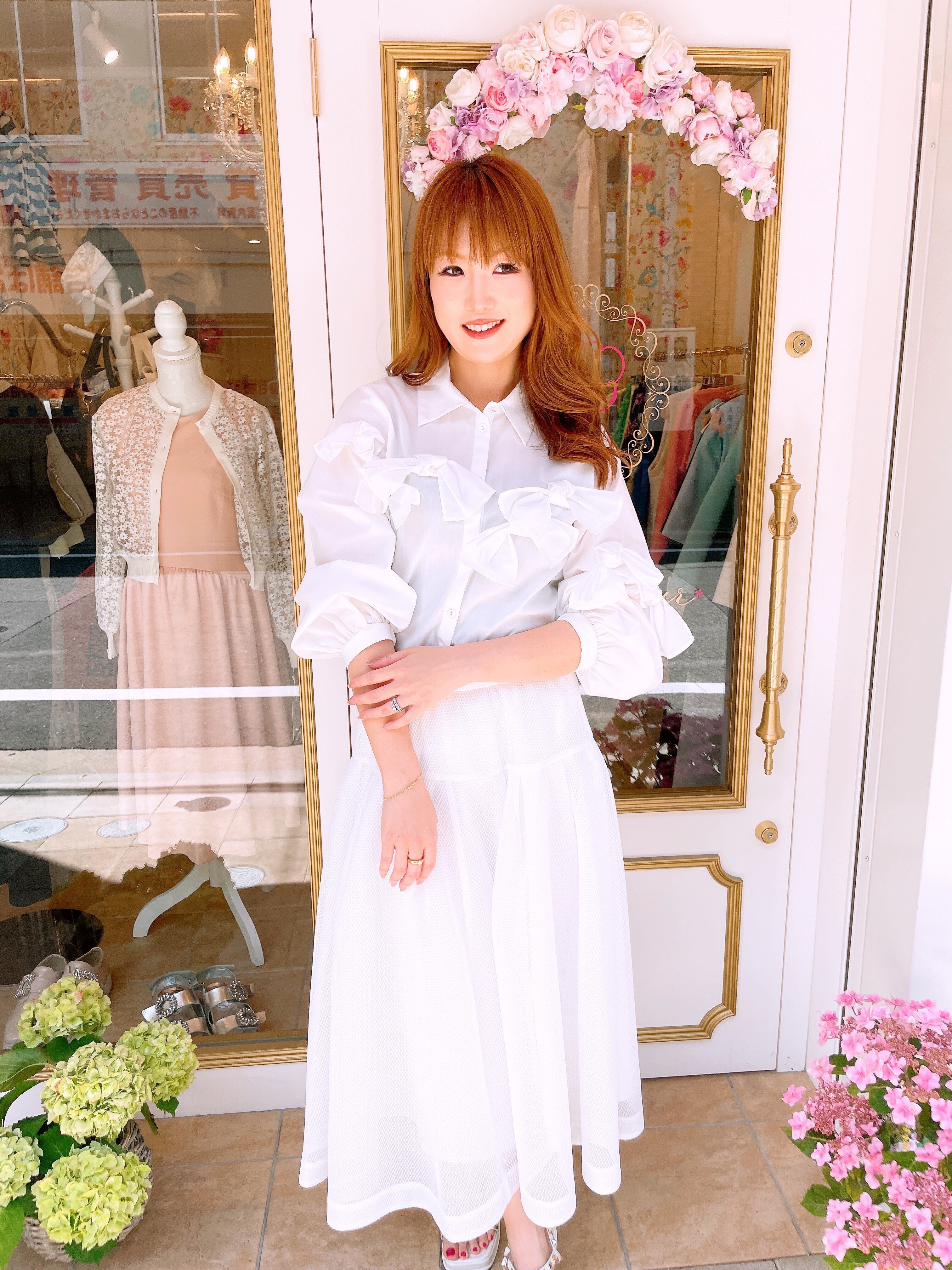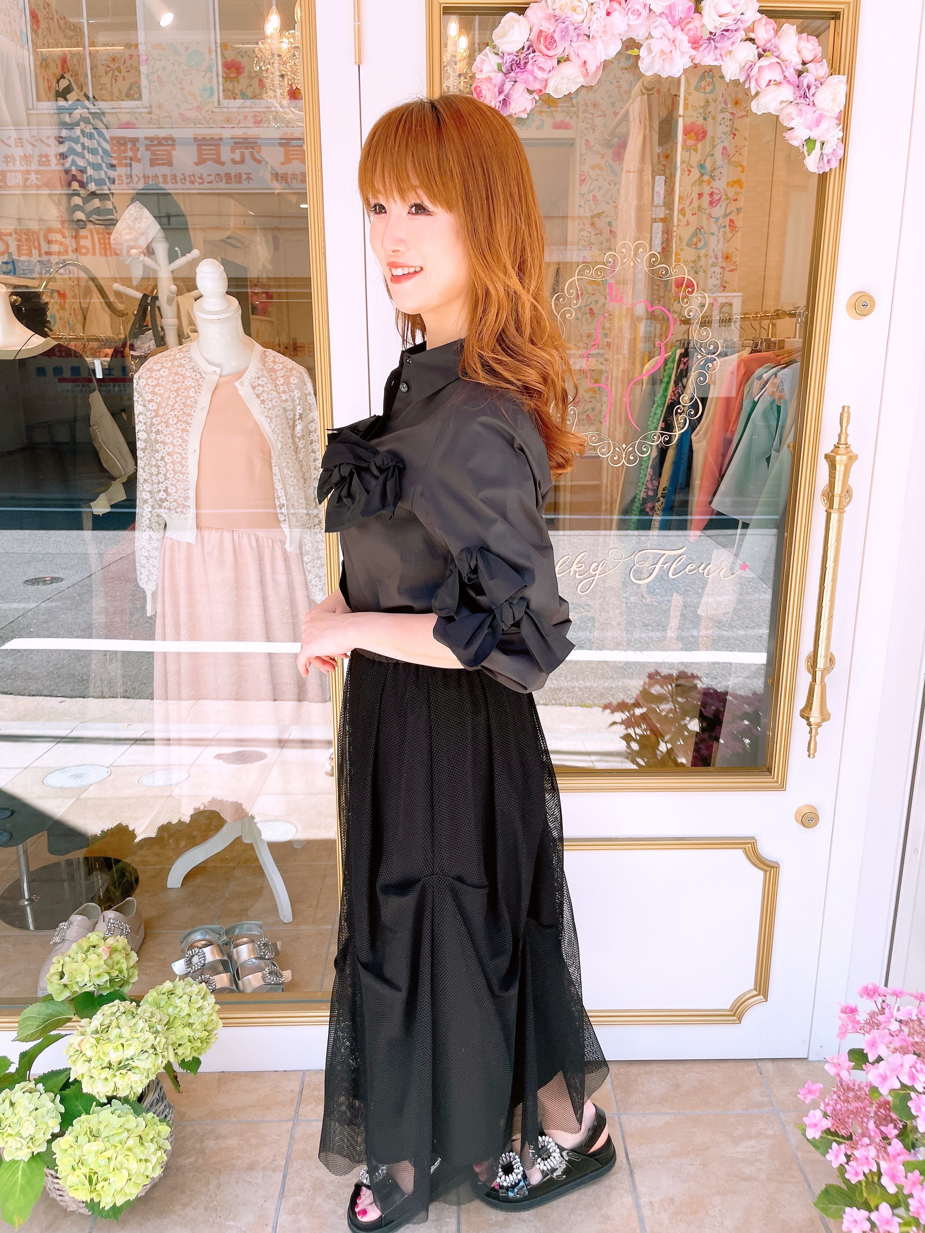 胸元のリボンデザインが可愛いブラウス。