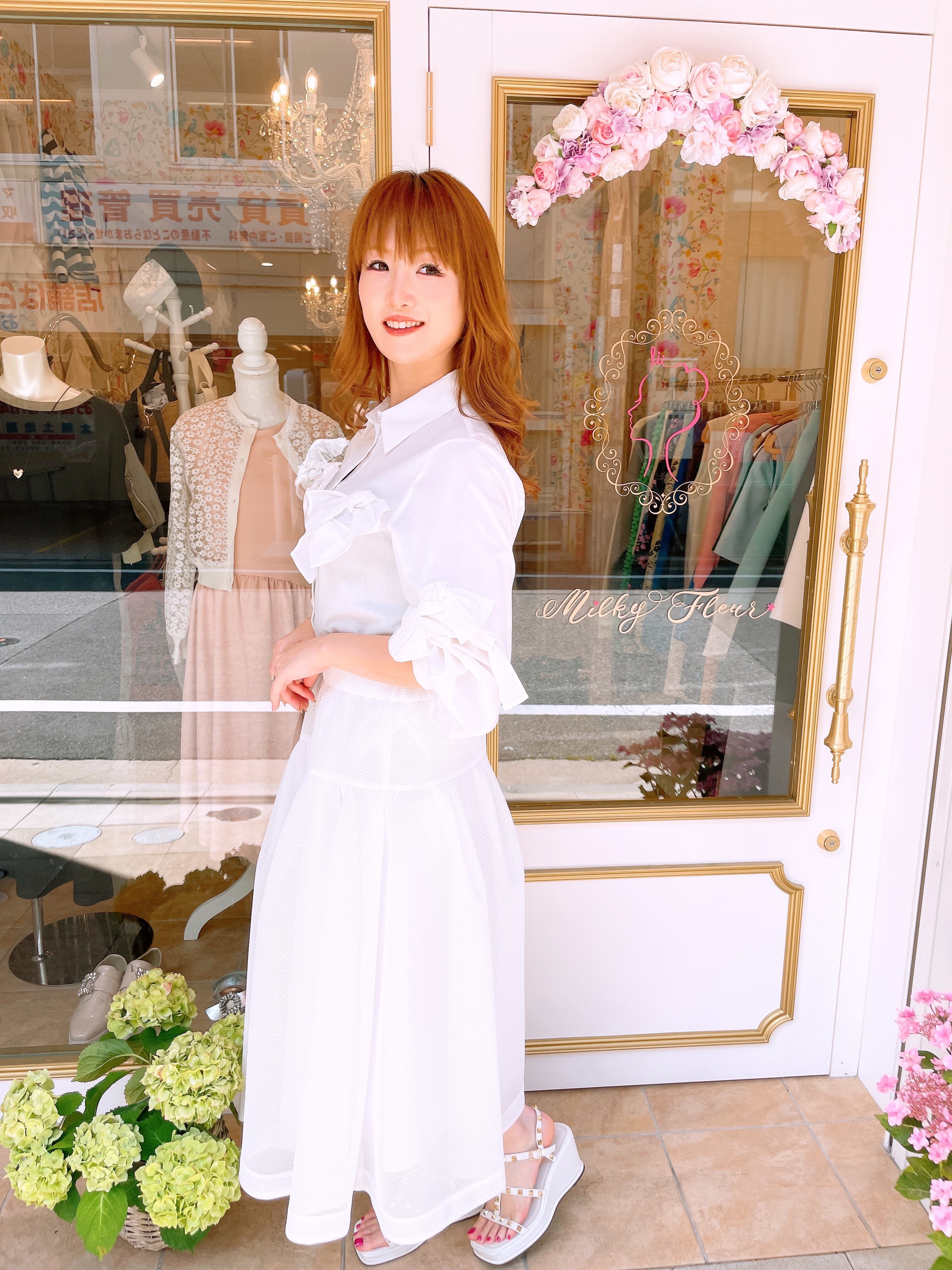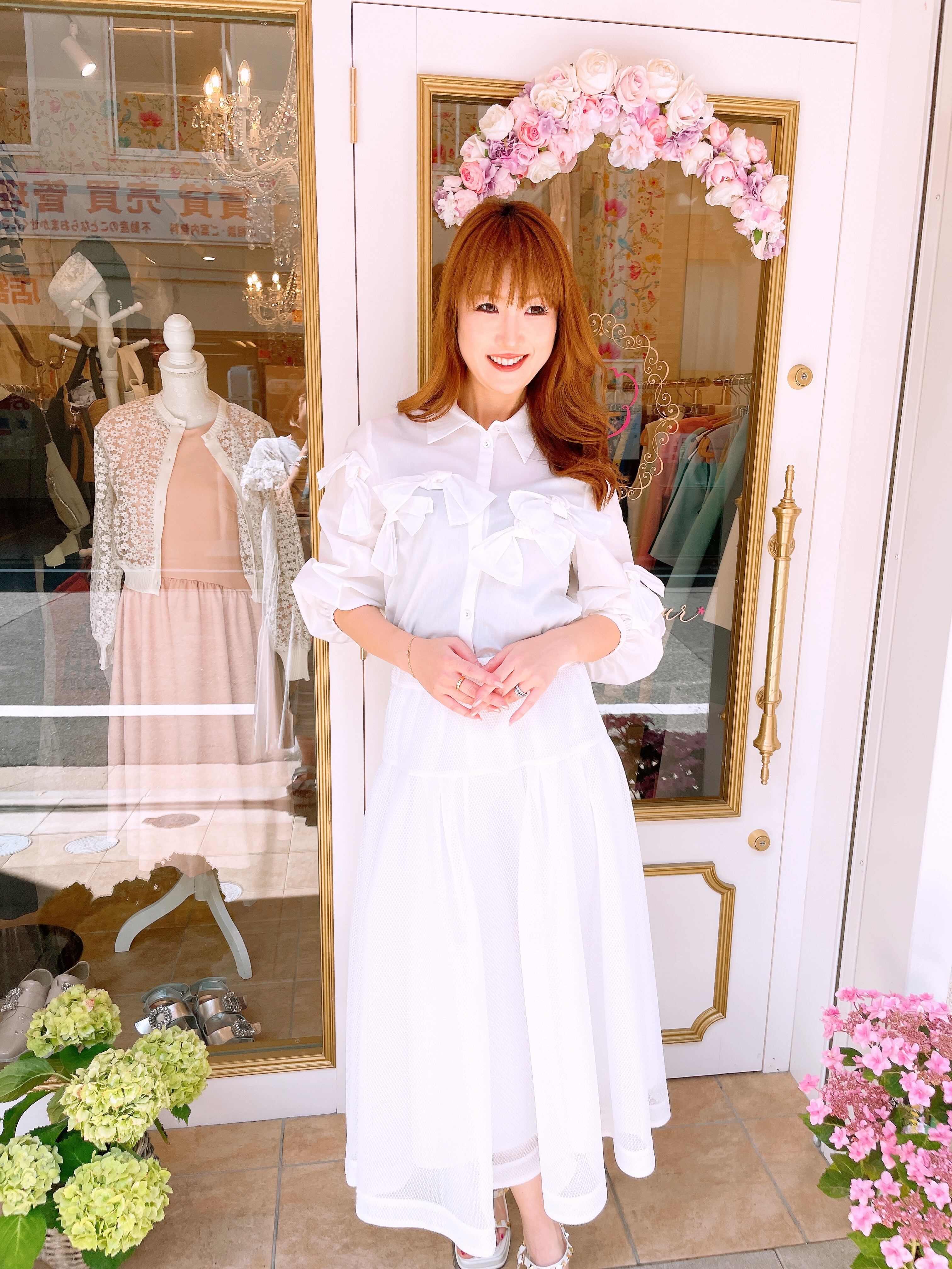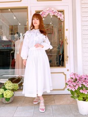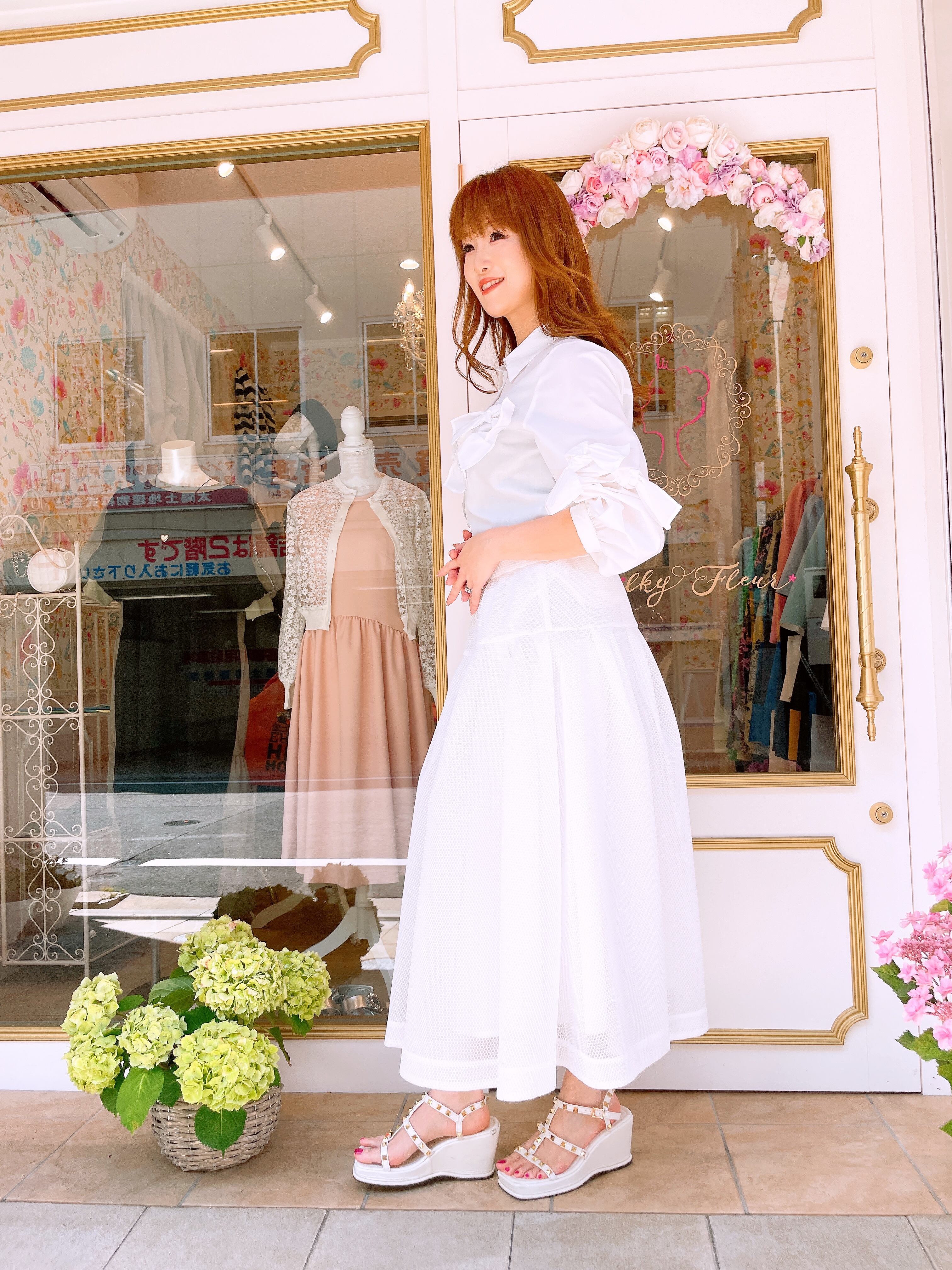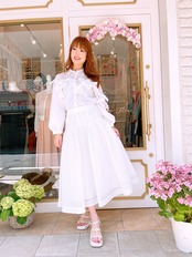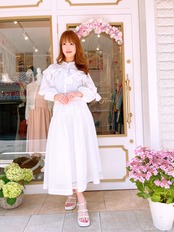 腰回りの切り替えやタックデザインなど着やすいフレアシルエットに。