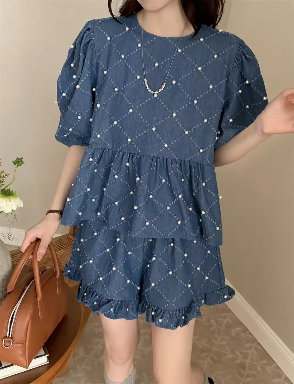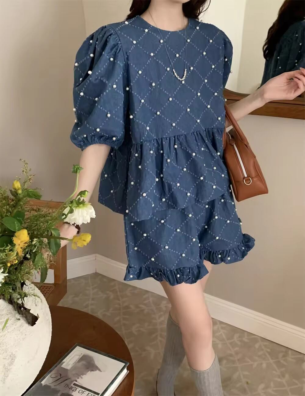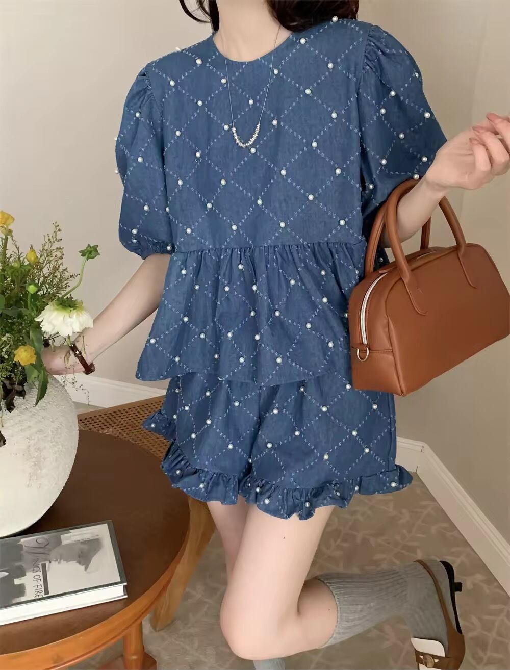 セパレートにもお楽しみ頂けるセットアップは、ランタンスリーブのトップスに、裾フリルのショートパンツで単品使いもスタイリングのアクセントに。