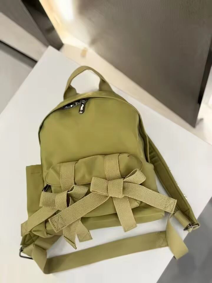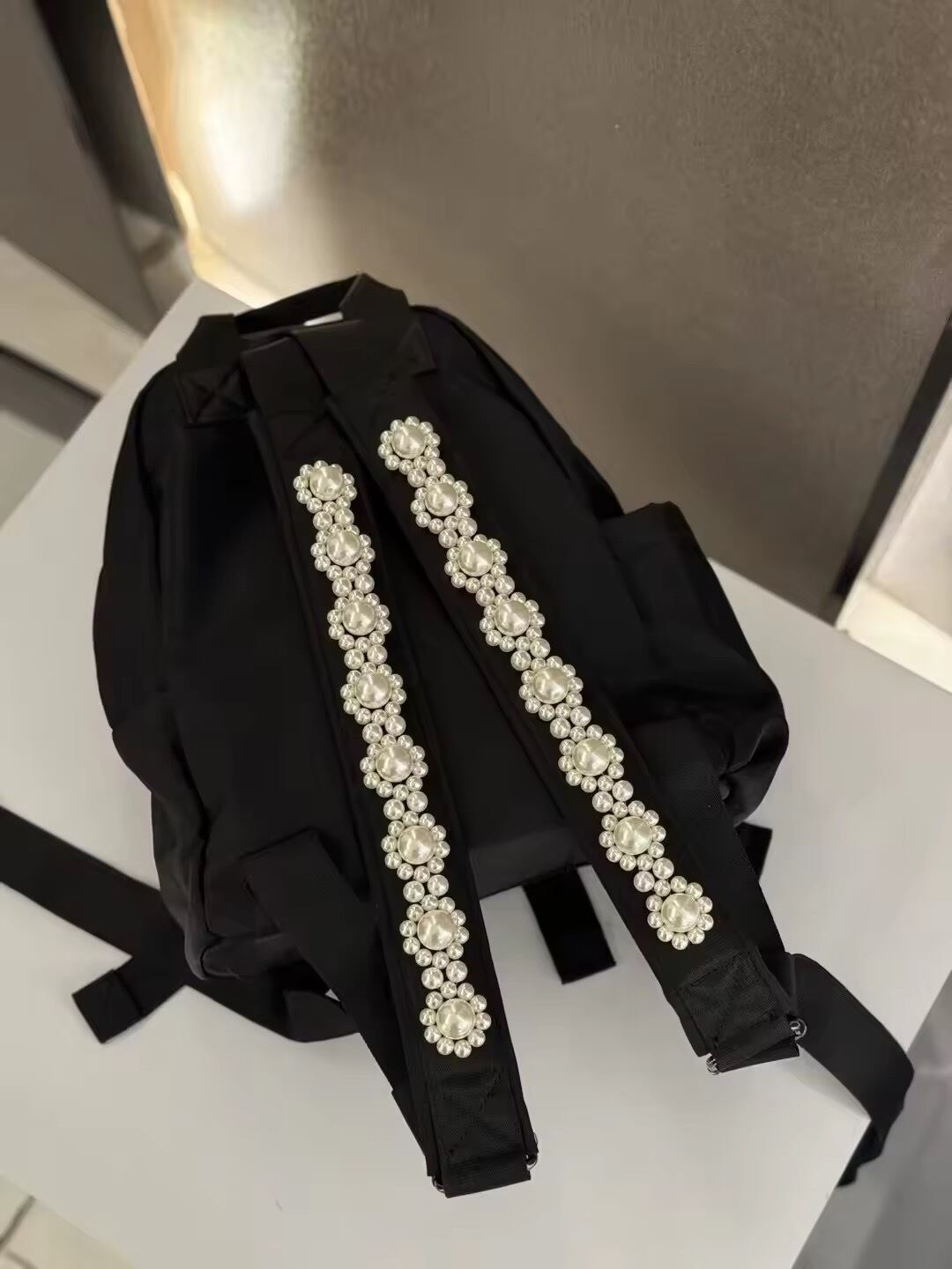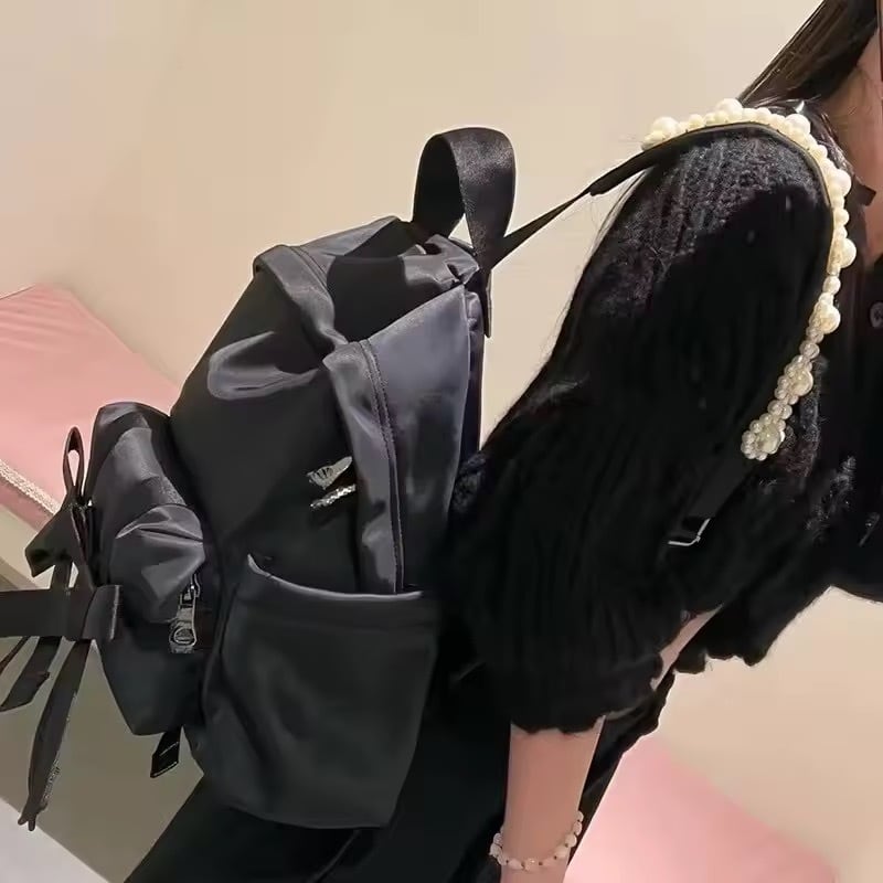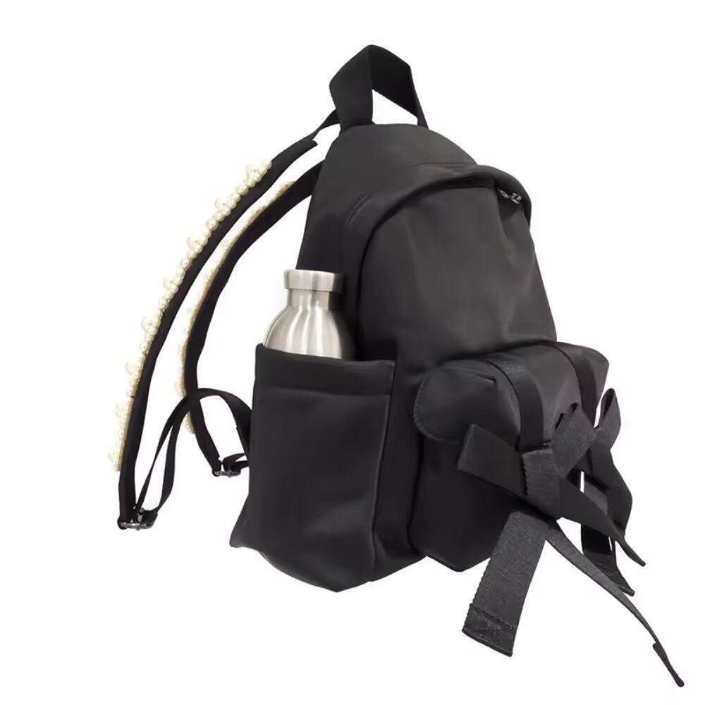 カジュアルで実用性あるデザインながら、パールとリボンがスタイリングにフェミニンさをミックスします。