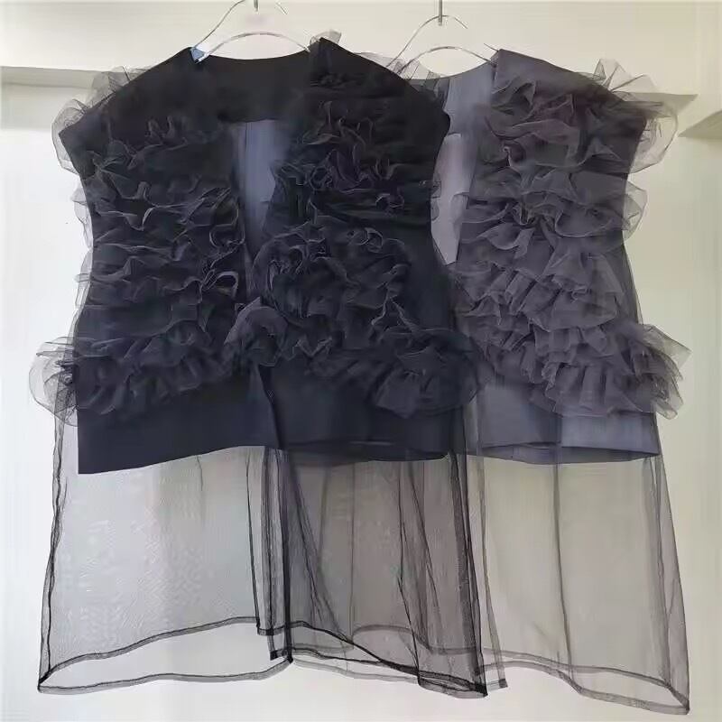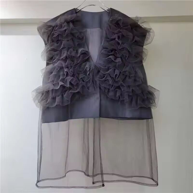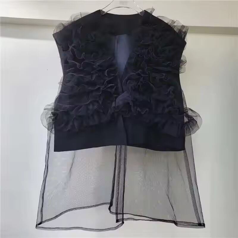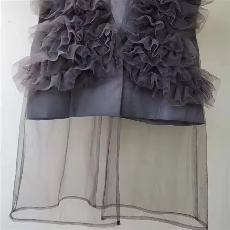 チュールフリルとシアーなお素材がデザインされたドッキンジレ。