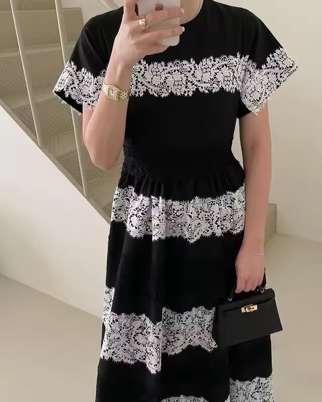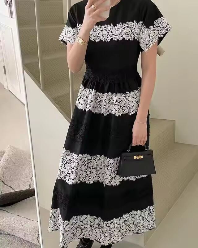 こだわりのボーダーと繊細なレースが絶妙に組み合わさったデザインのワンピースです。