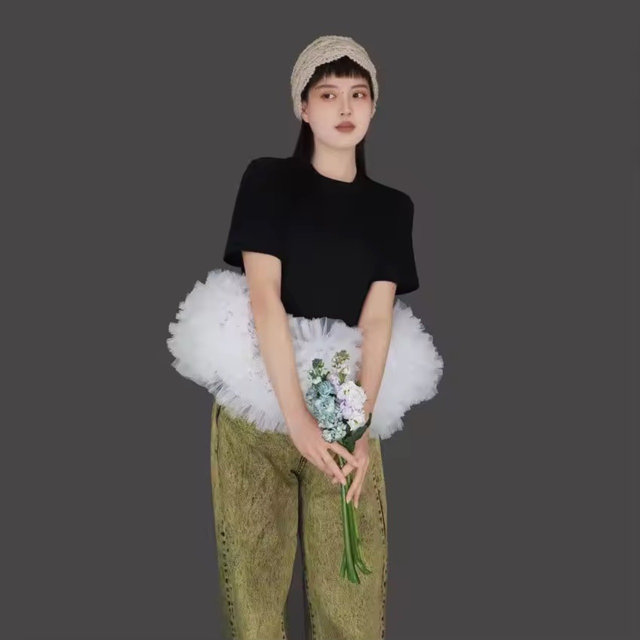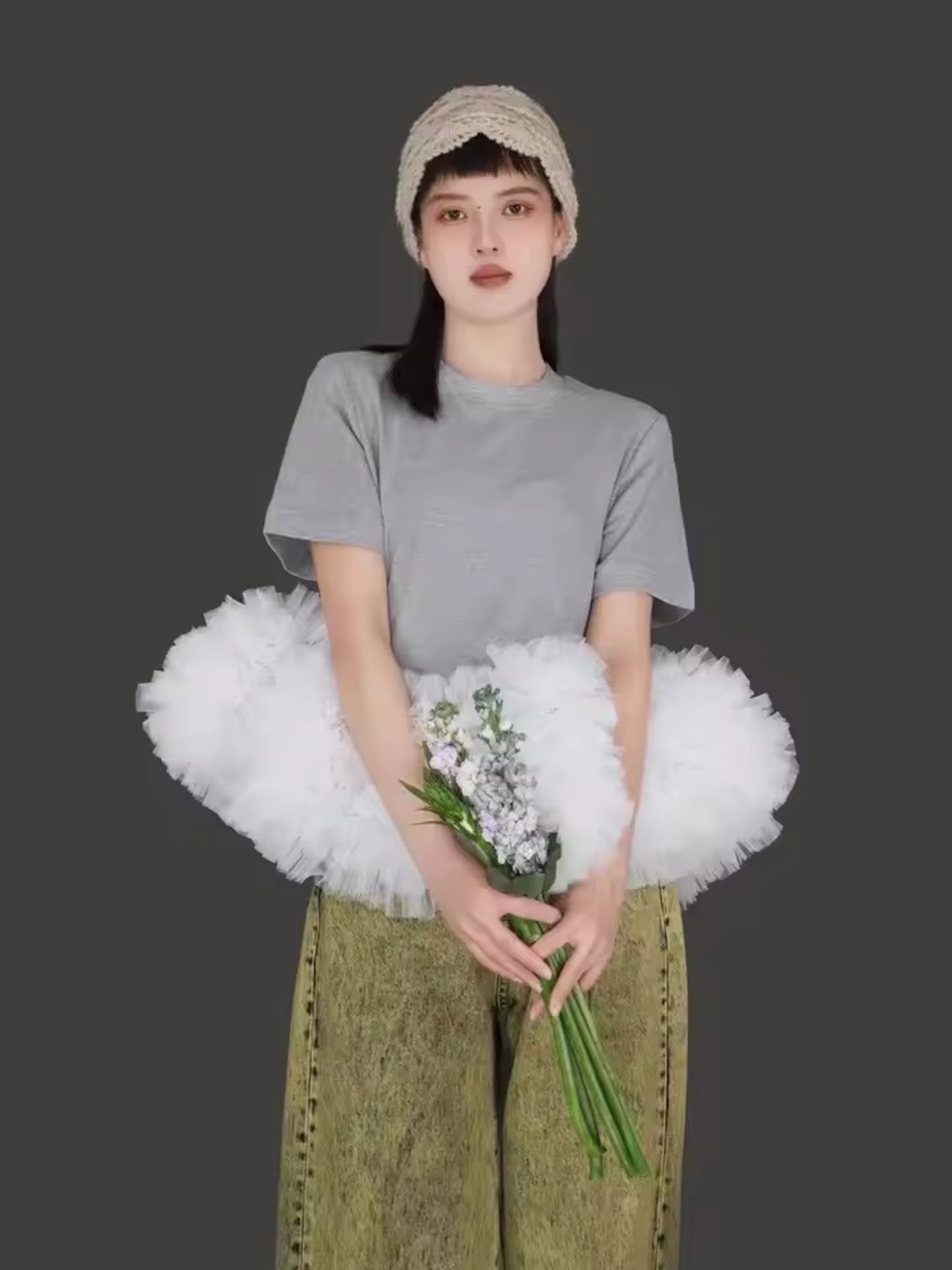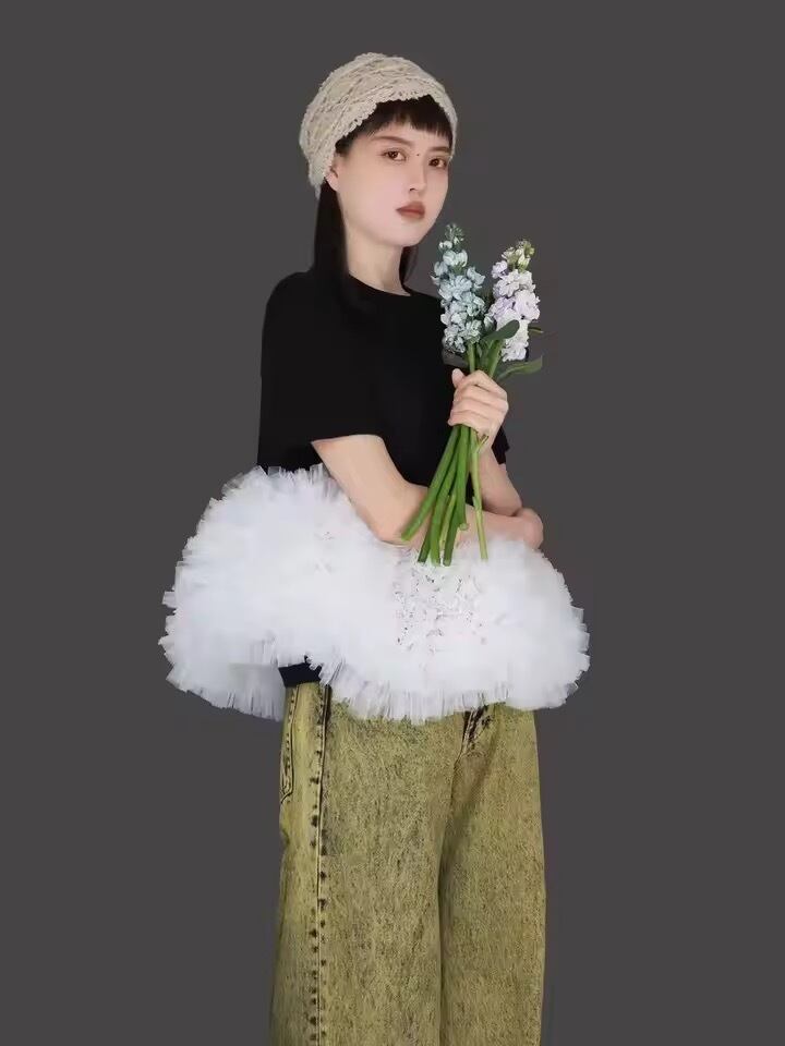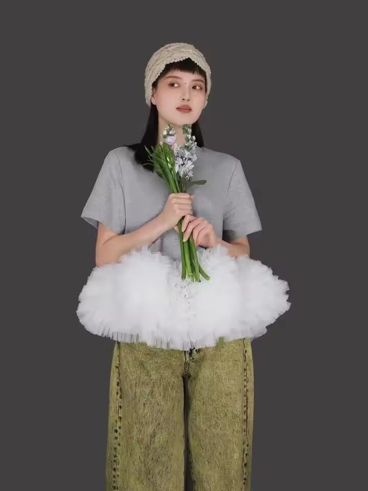 軽やかなチュール素材が気軽に装飾を加え、普段使いから特別なシーンまで幅広く楽しめます。