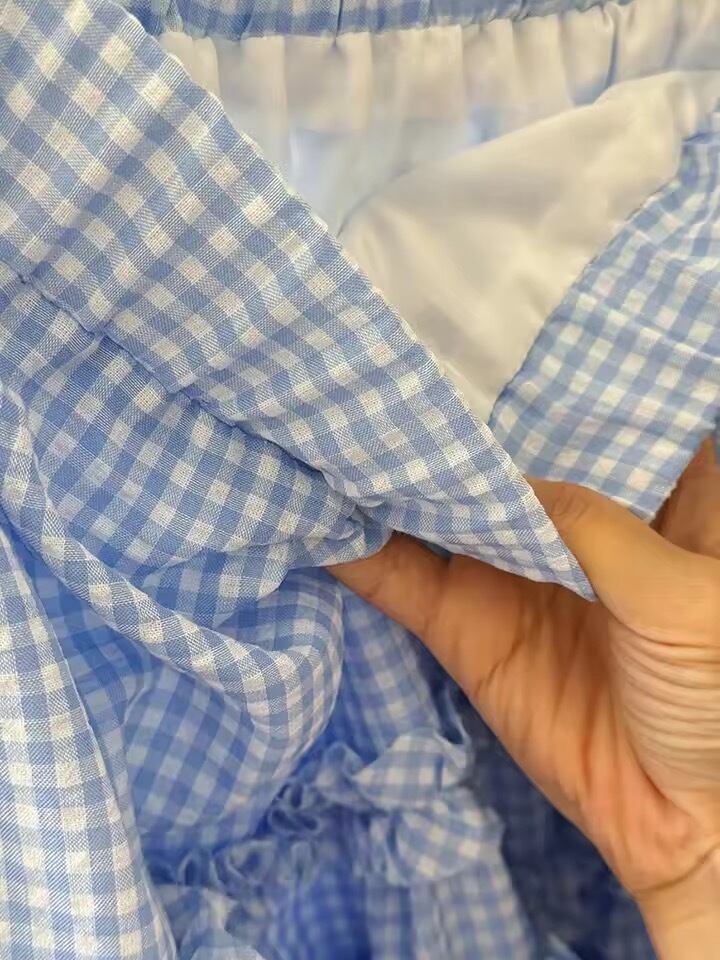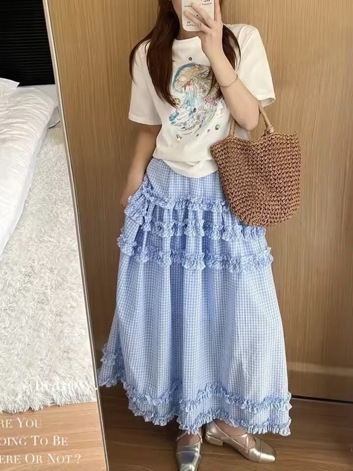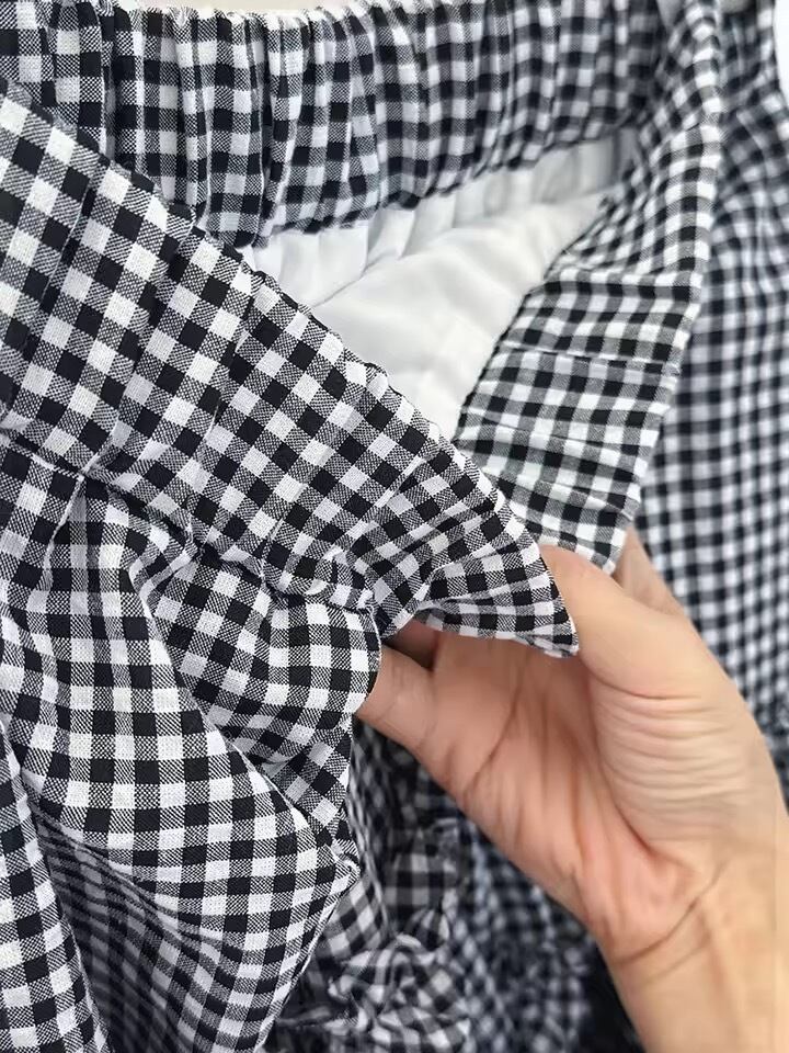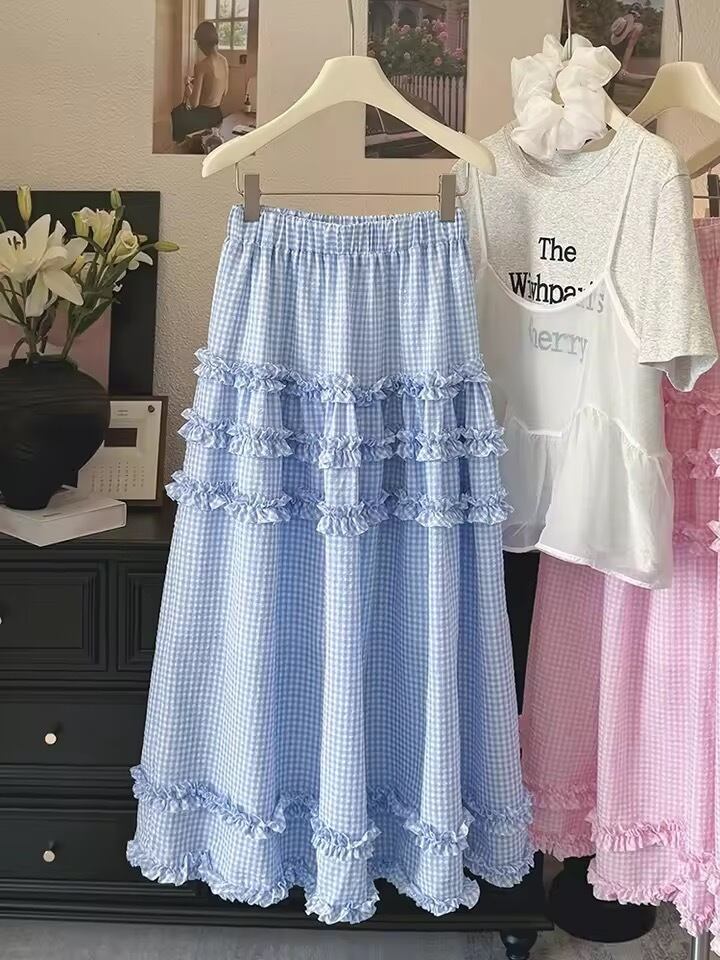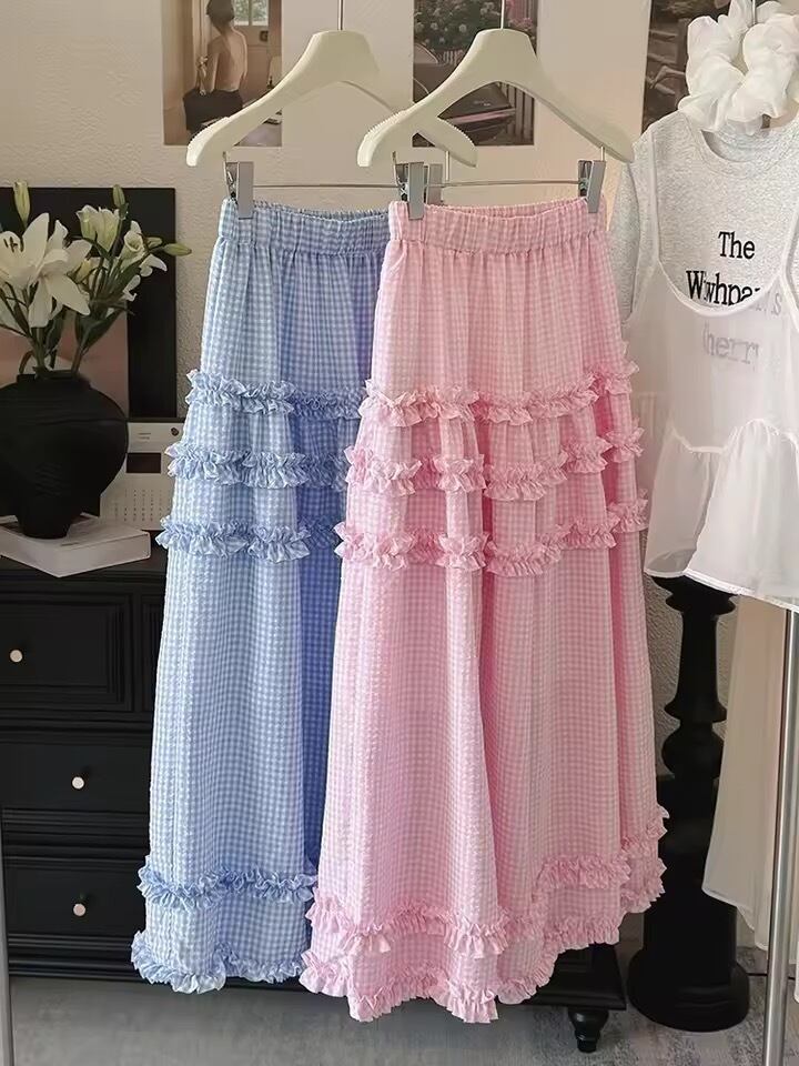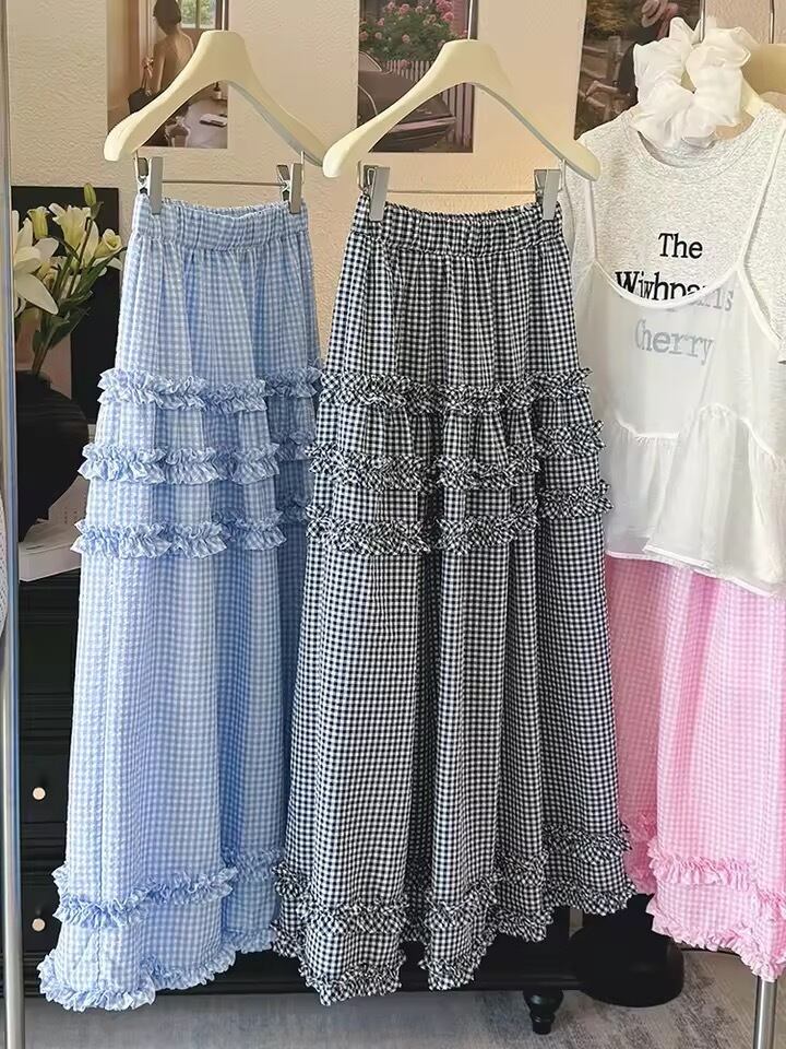ギンガムチェックにフリルがアクセントのマキシスカート。