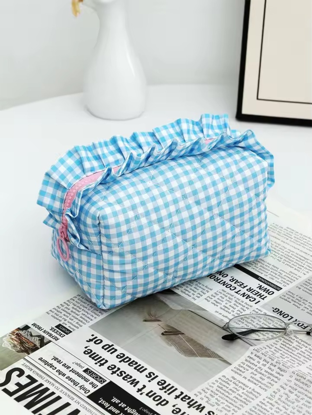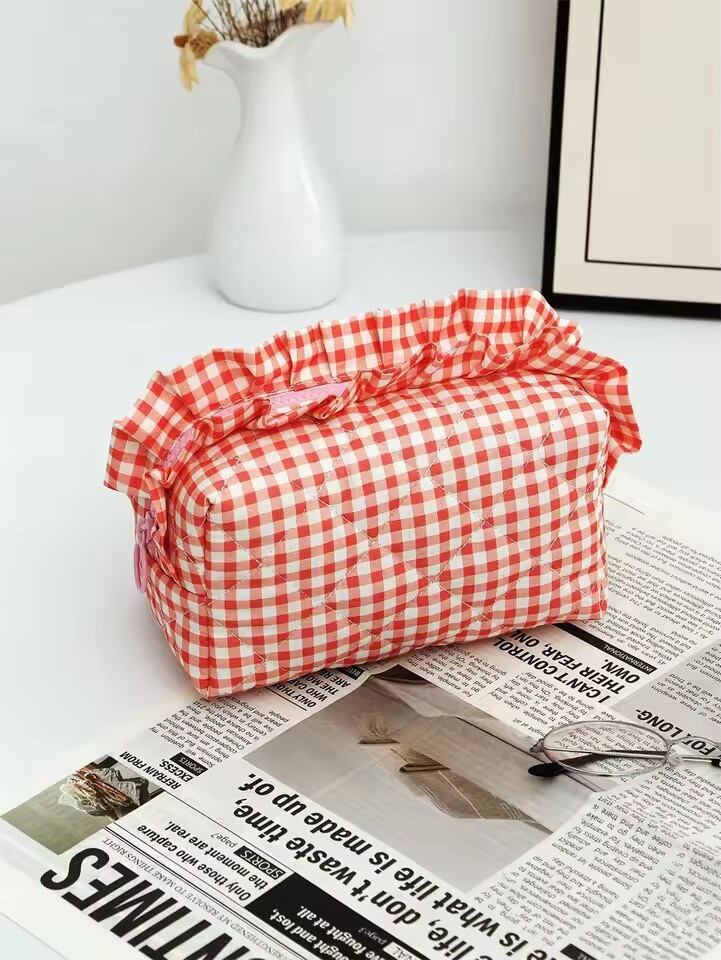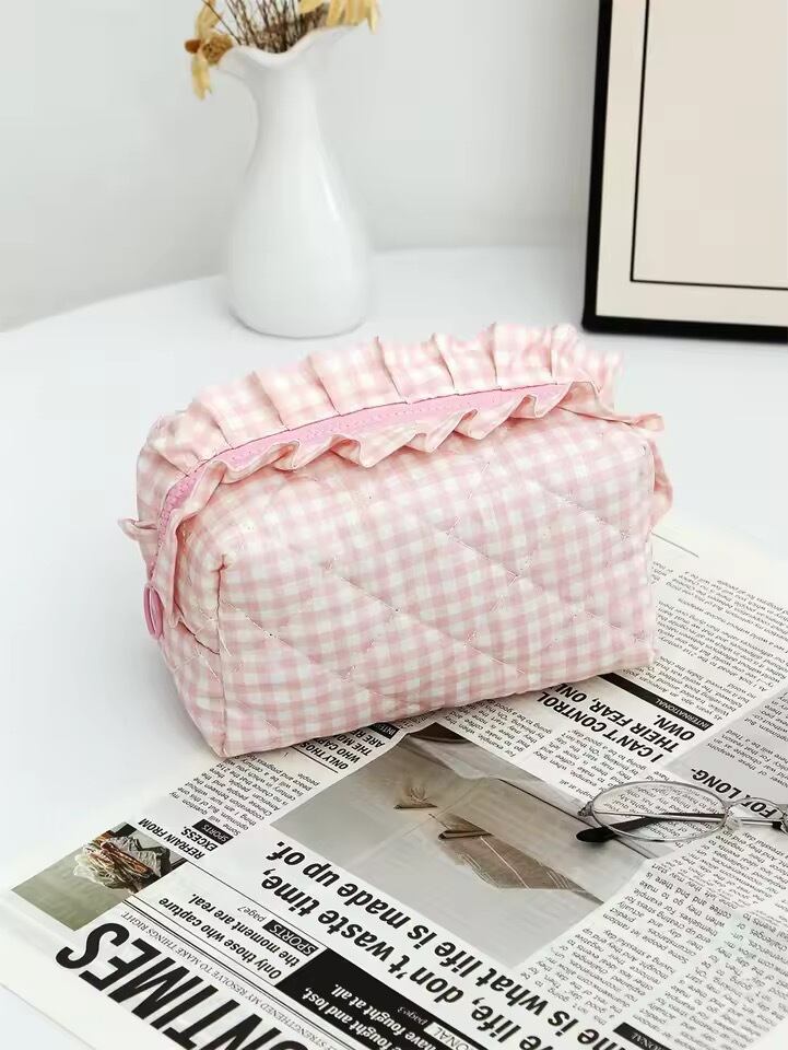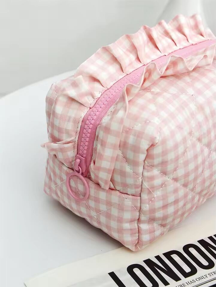 ネームカスタマイズギンガムチェックフリルポーチ(一ヶ月程でお届け)