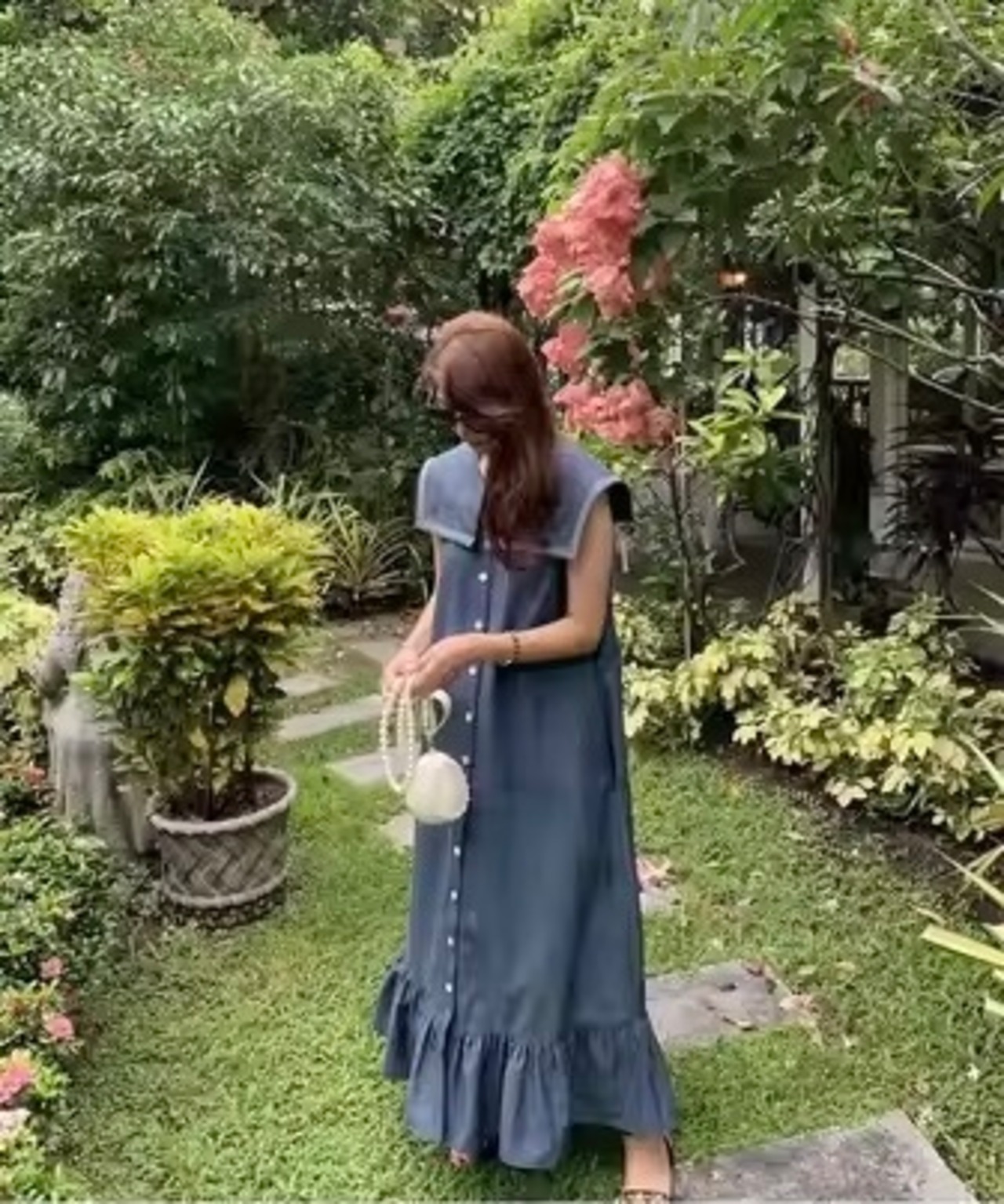 シンプルなデザインにセーラーカラーがインパクトをプラスします。