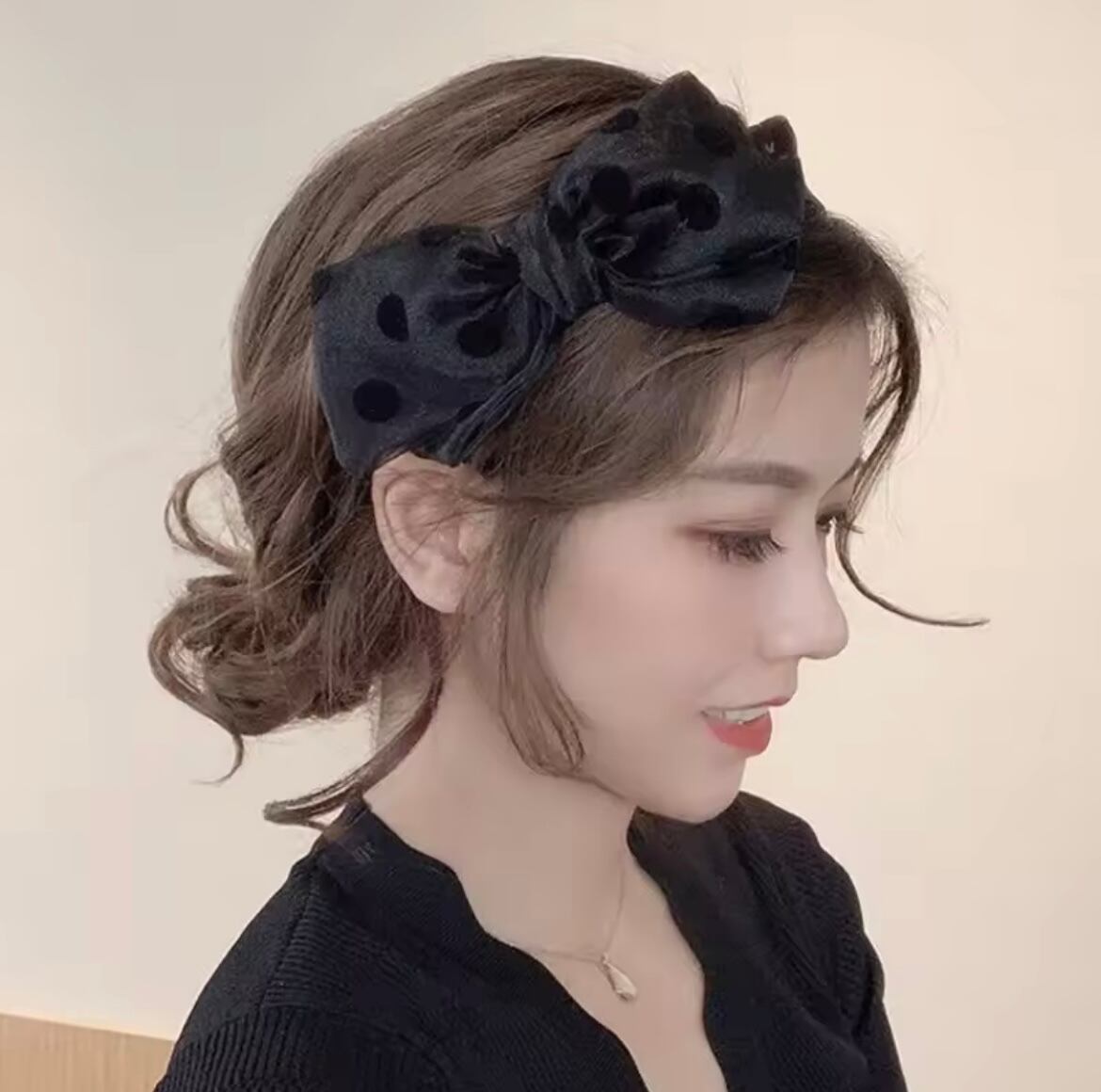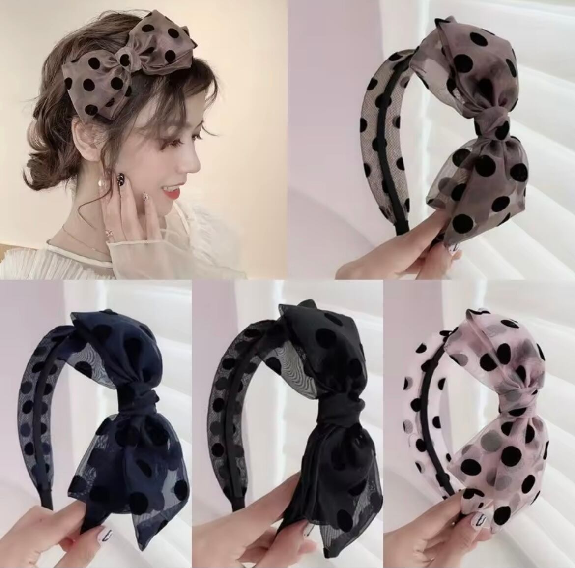 ドットオーガンジーのリボンカチューシャ。