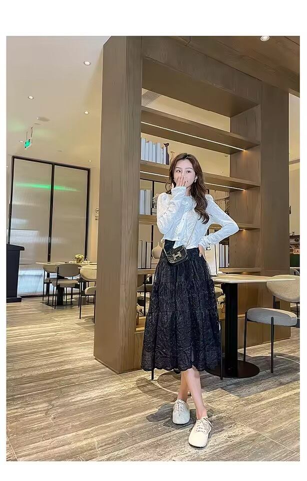 裾スカラップが目を惹くレースデザインのスカート。