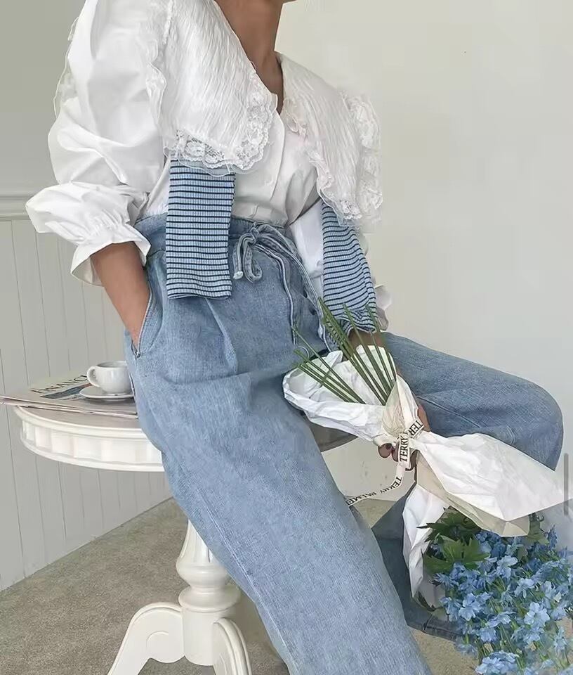 優雅なレースとセーラーカラーが特徴的なブラウス。
