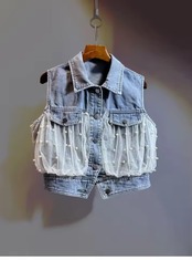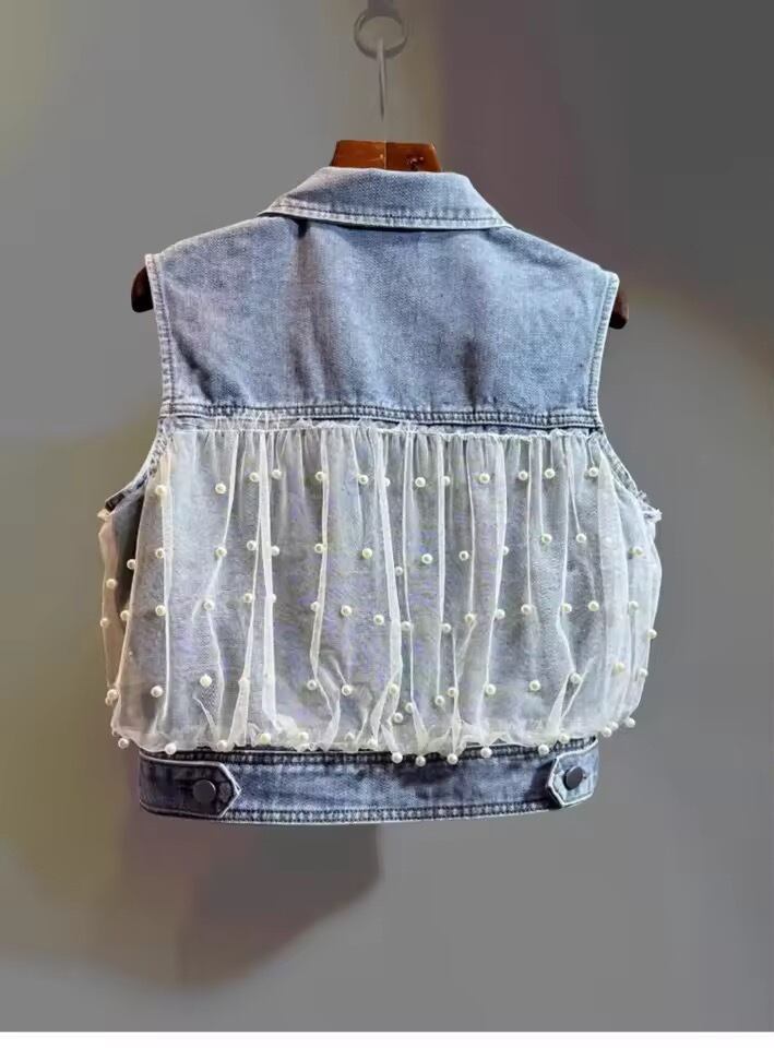 パールチュールデニムジレ(一ヶ月程でお届け)