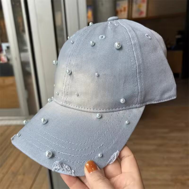 パールダメージデニムキャップ(一ヶ月程でお届け)