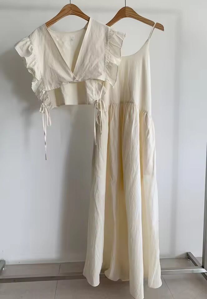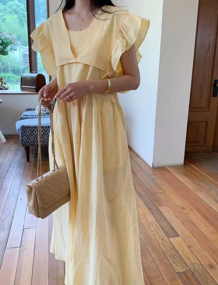 フリルスリーブのトップスを重ねて着て頂ける2wayワンピース。