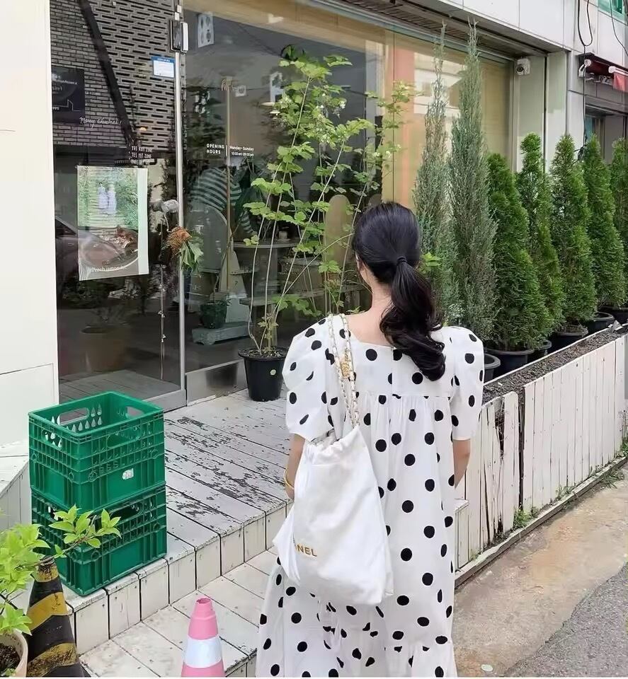 パフショルダードットワンピース(一ヶ月程でお届け)