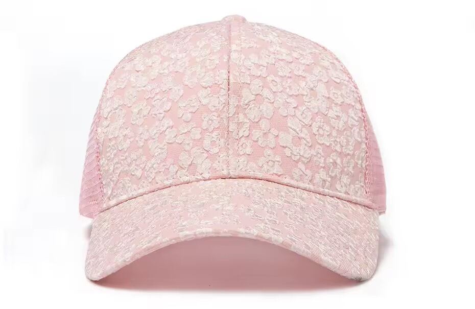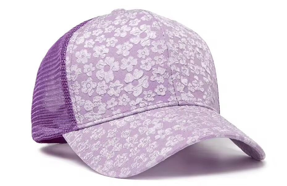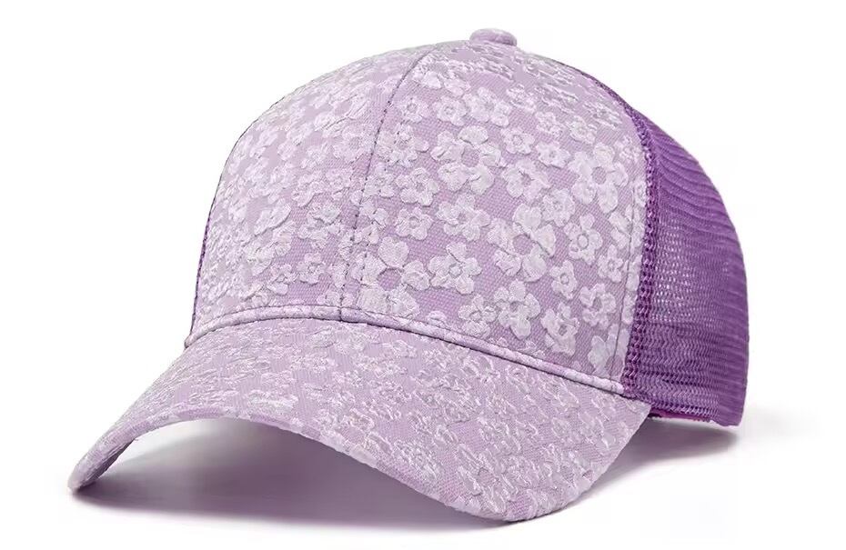 フラワージャガードデザインのキャップ。