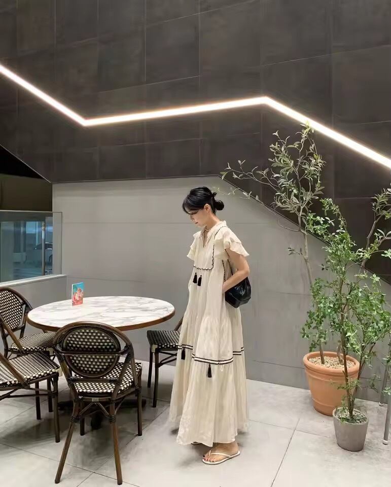 フリンジ配色ワンピース(一ヶ月程でお届け)