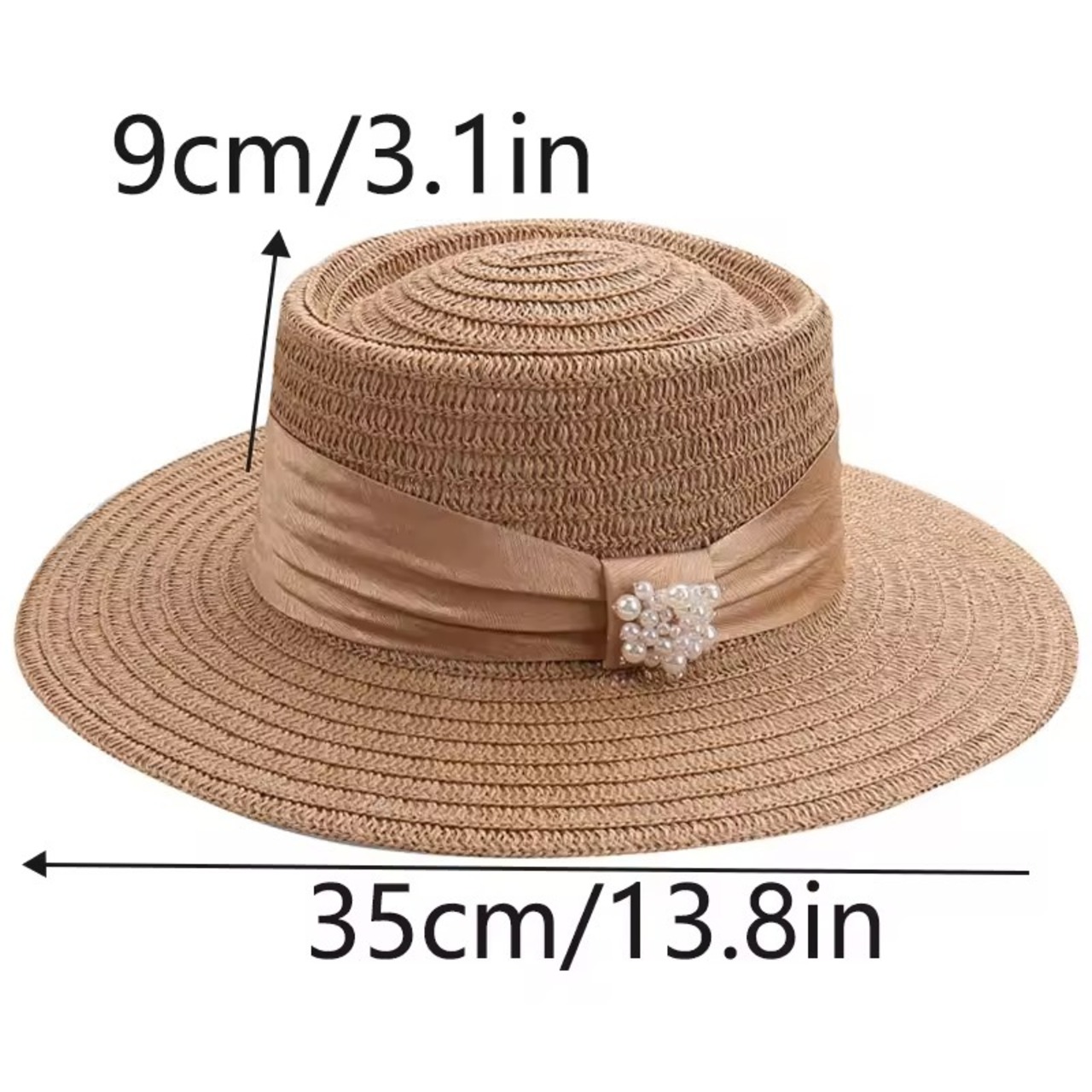 サイドリボンにパールが華やかなストローハット。