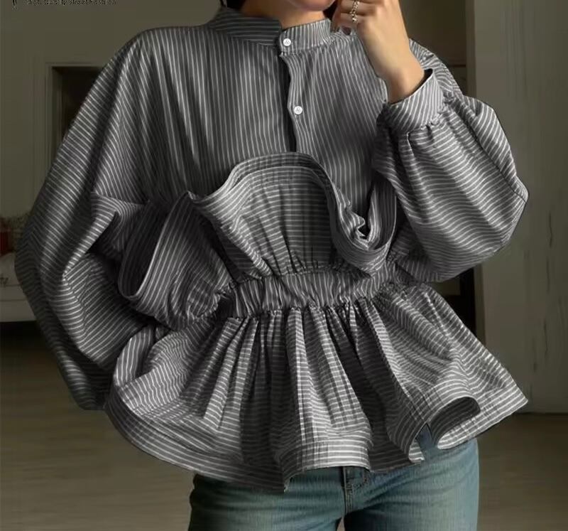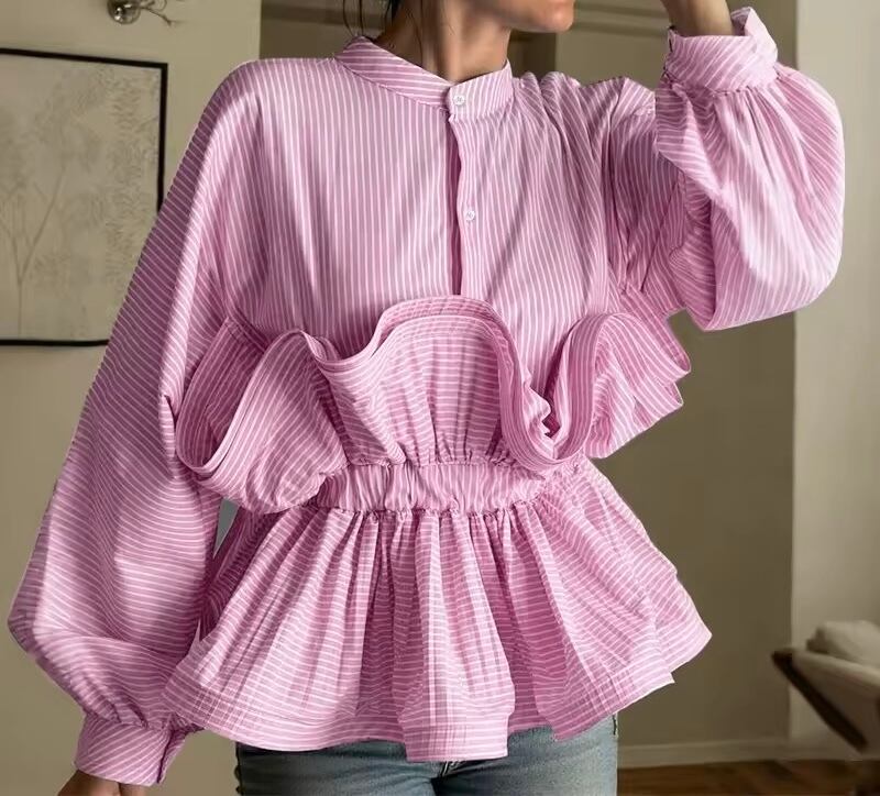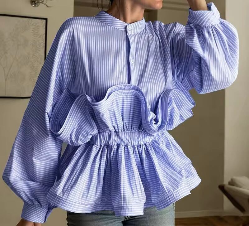 フリルストライプボーダーブラウス(一ヶ月程でお届け)