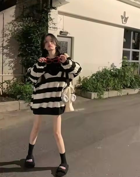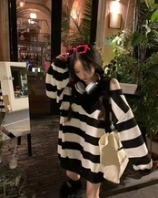 オープンショルダーもアクセントになり、オーバーサイズ感も可愛いトップスです。