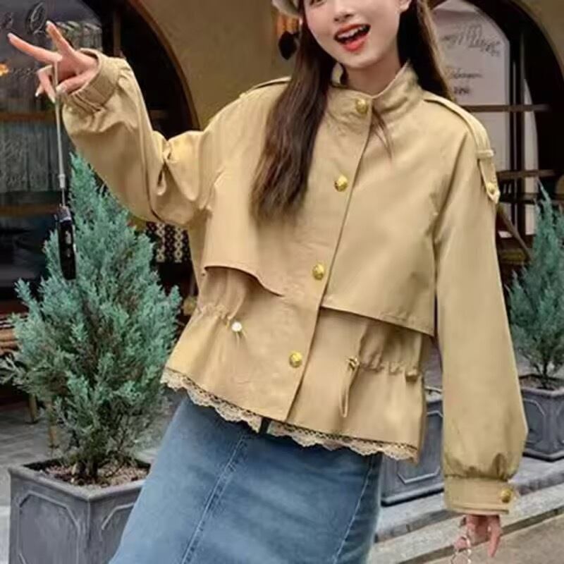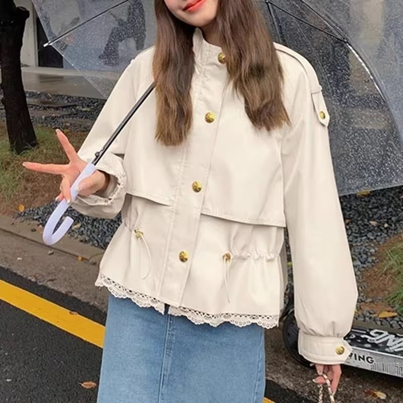 ミリタリー調がメンズライクなデザインに裾レースがアクセントのアウター。