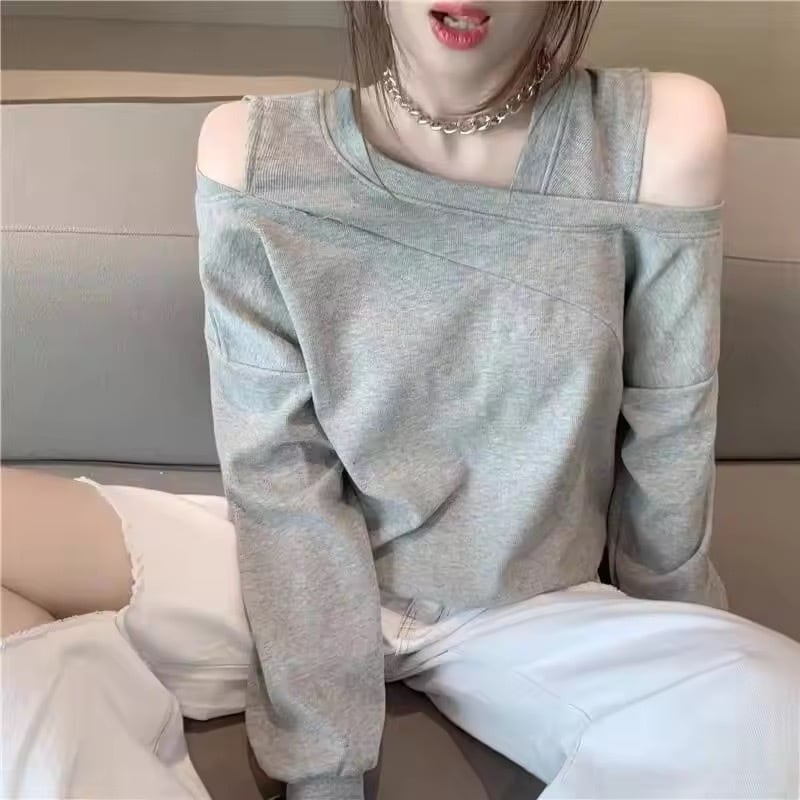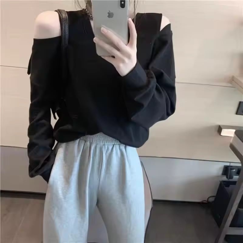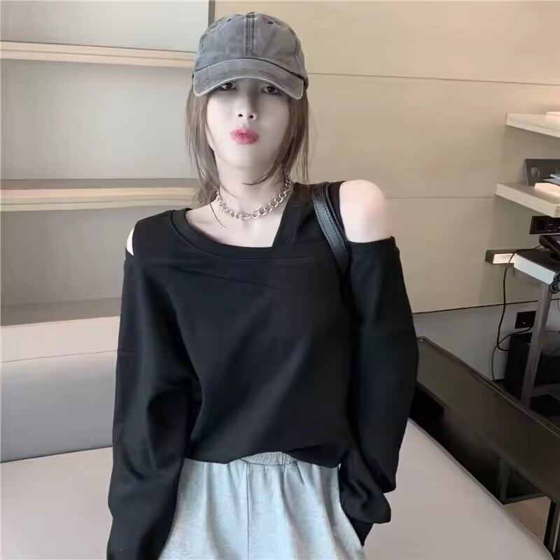 アシンメトリーオープンショルダートップス(一ヶ月程でお届け)
