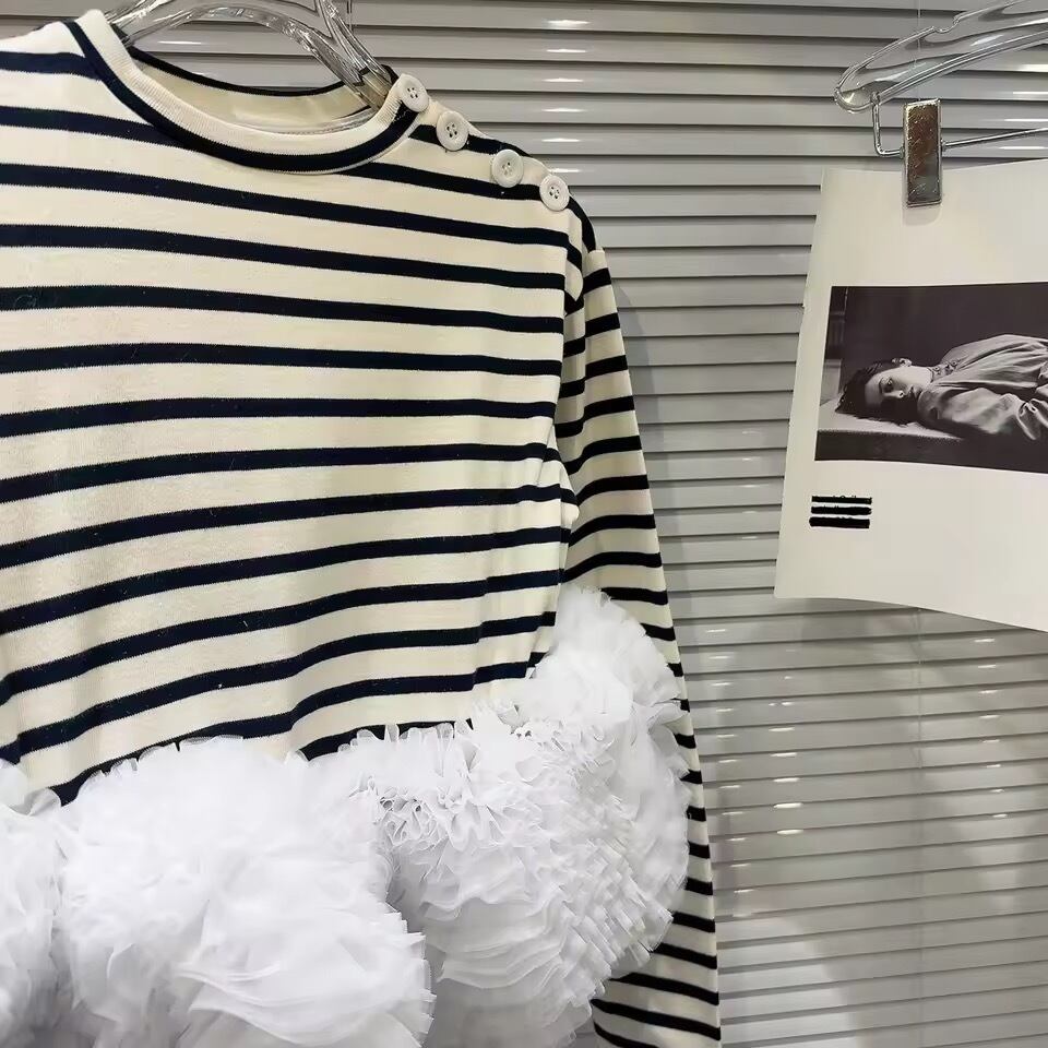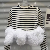 ボーダーにボリュームあるチュールが華やかなトップス。