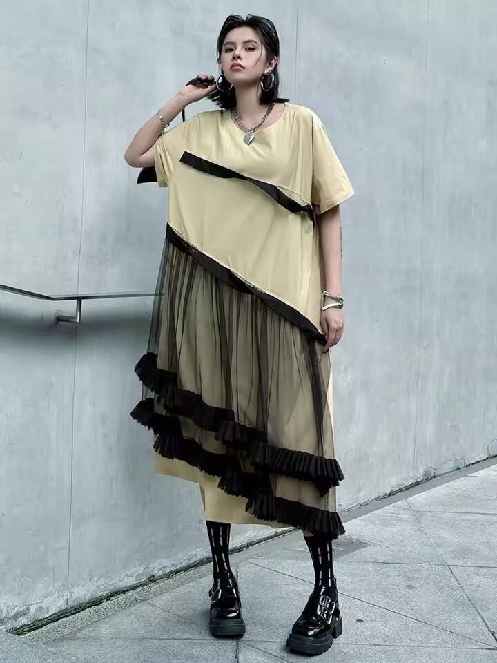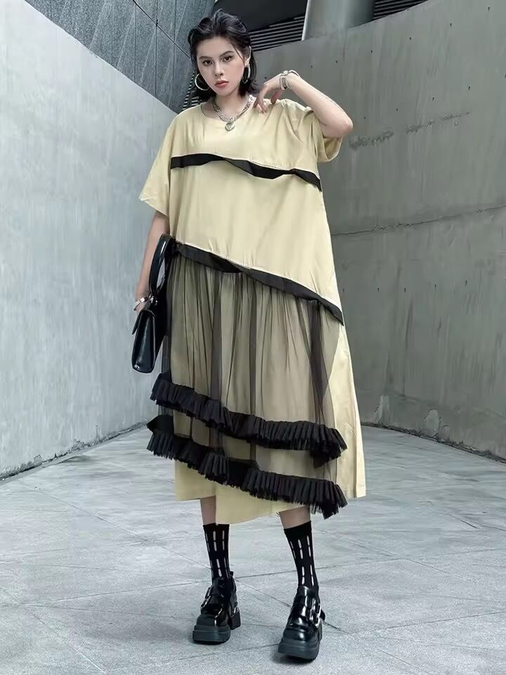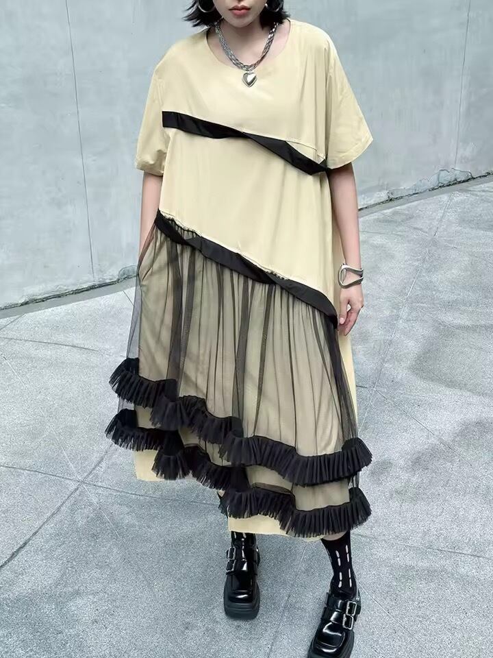 アシンメトリーチュールドッキングTシャツワンピース(一ヶ月程でお届け)