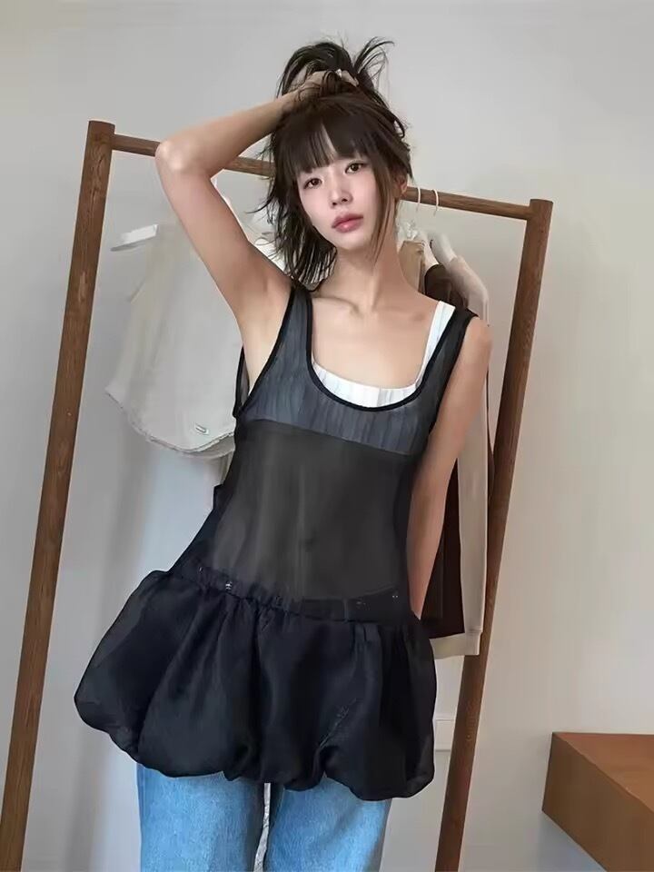 インナーにTシャツやニットを重ねてシーズンレスにお楽しみ頂けるトップスです。