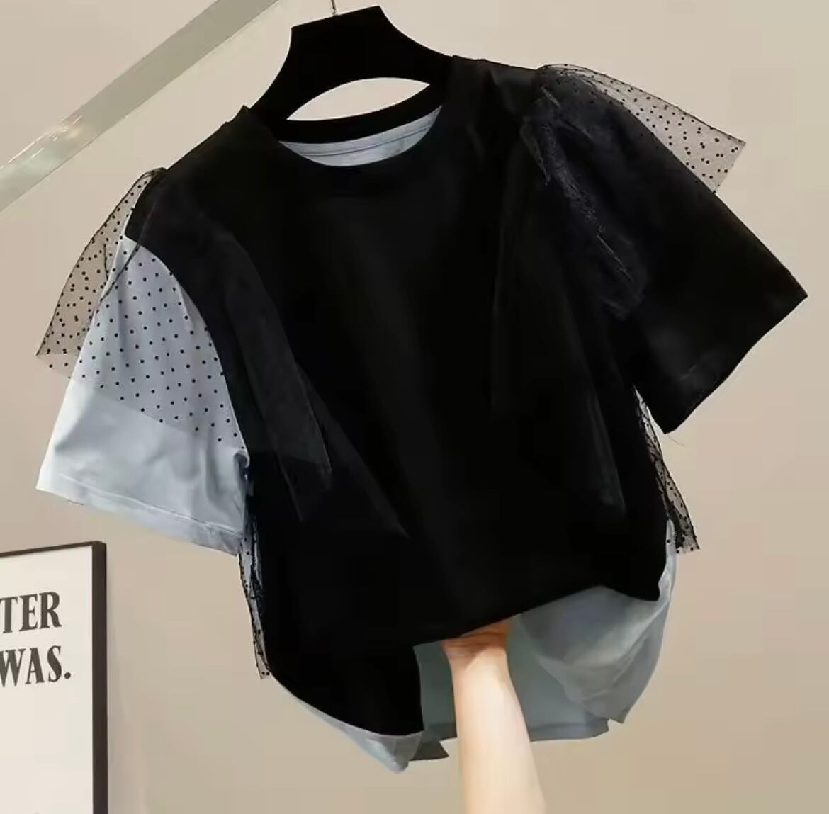ドットチュールのお袖が華やかなTシャツ。