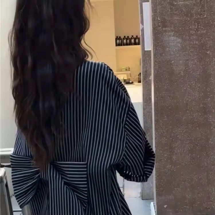 バックリボンストライプシャツ(一ヶ月程でお届け)