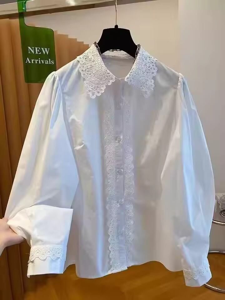 一枚ではもちろん、ニットやカーディガンと重ねても襟元のレースが映えるブラウスです。