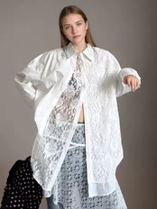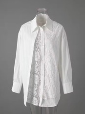 エレガントなレースが施されたアシンメトリーレースブラウスは、日常のスタイリングに華やかで特別な雰囲気をプラスします。
