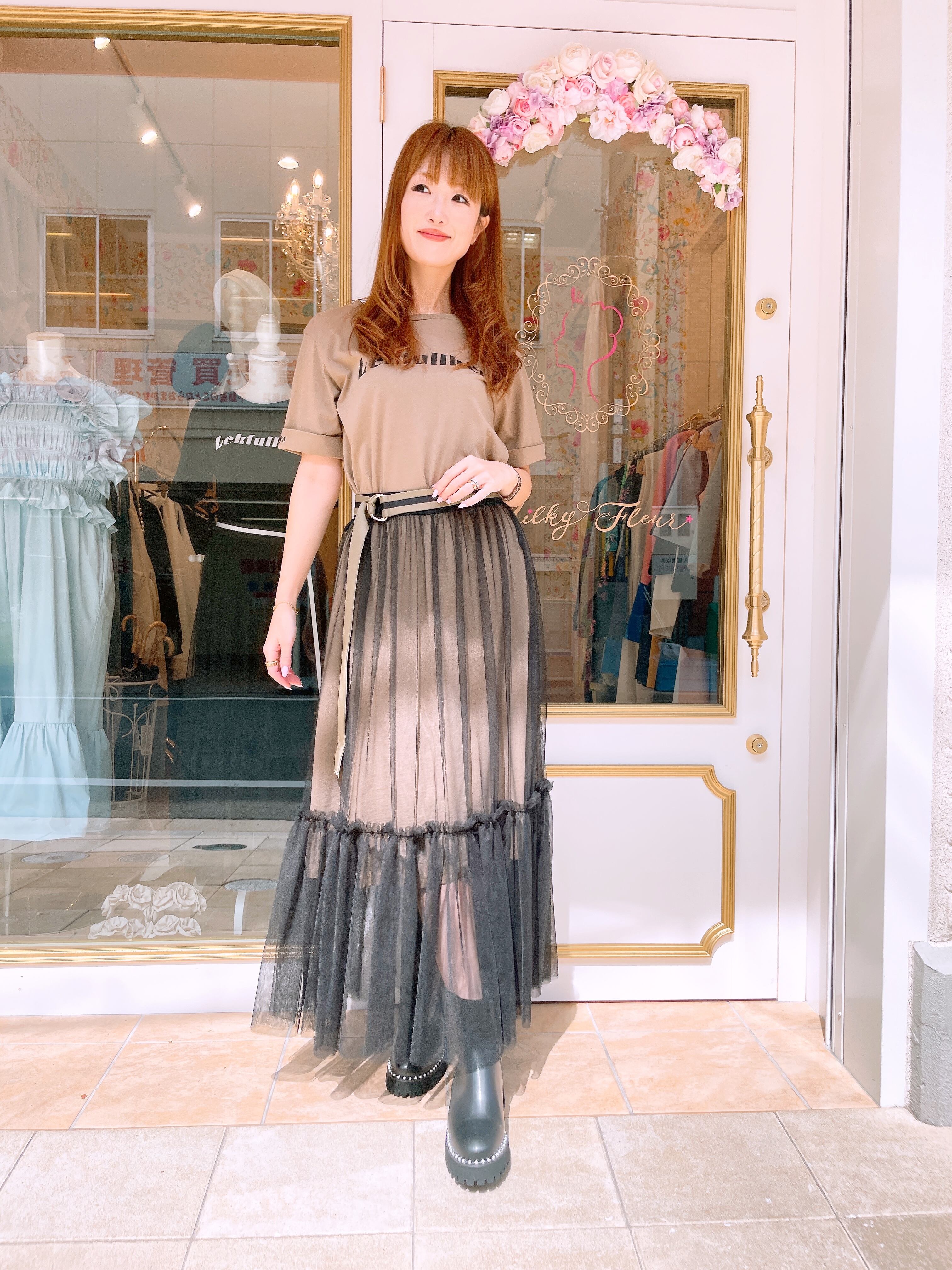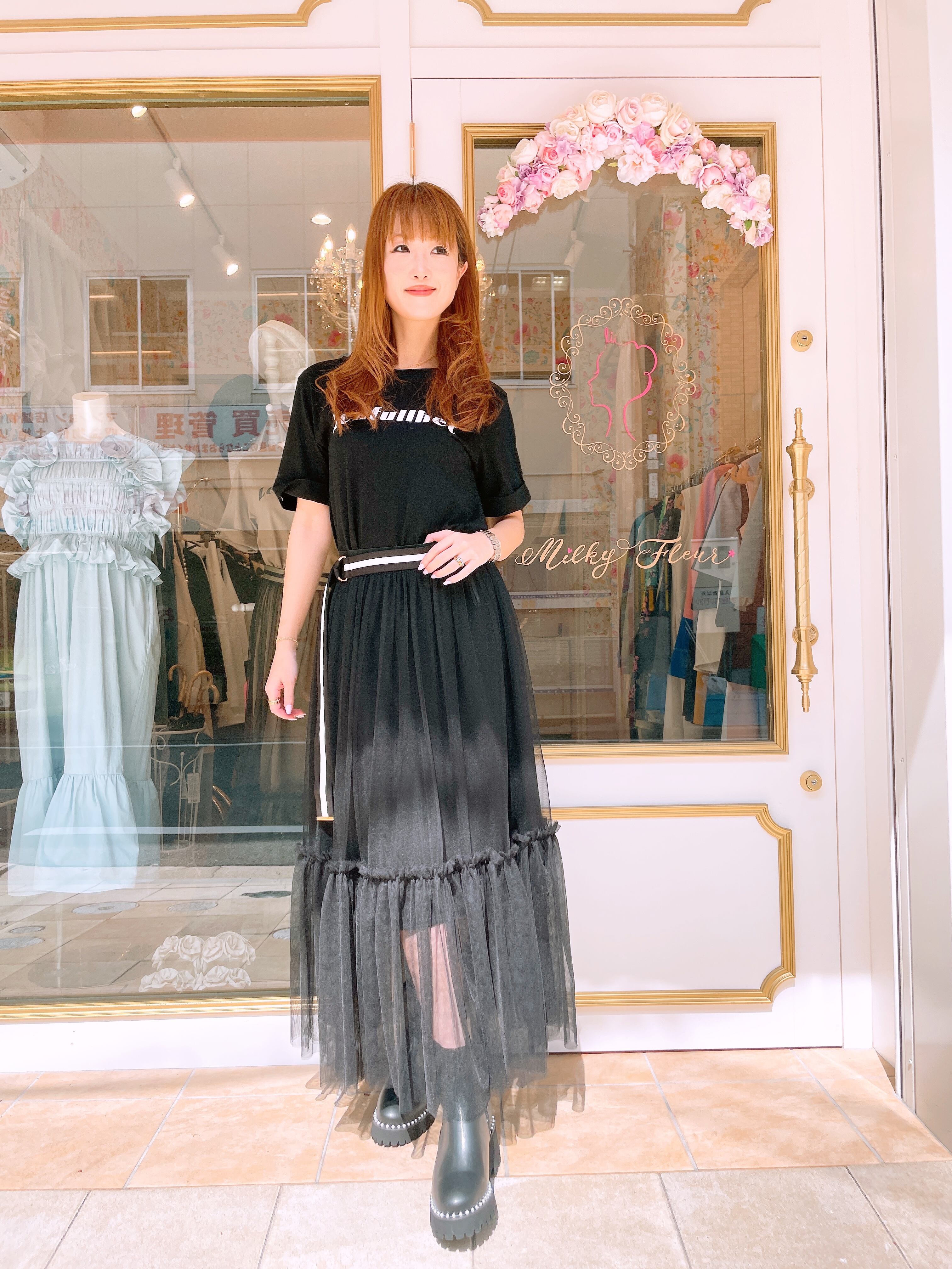 ガレナから入荷のTシャツワンピースとチュールスカートのセット。