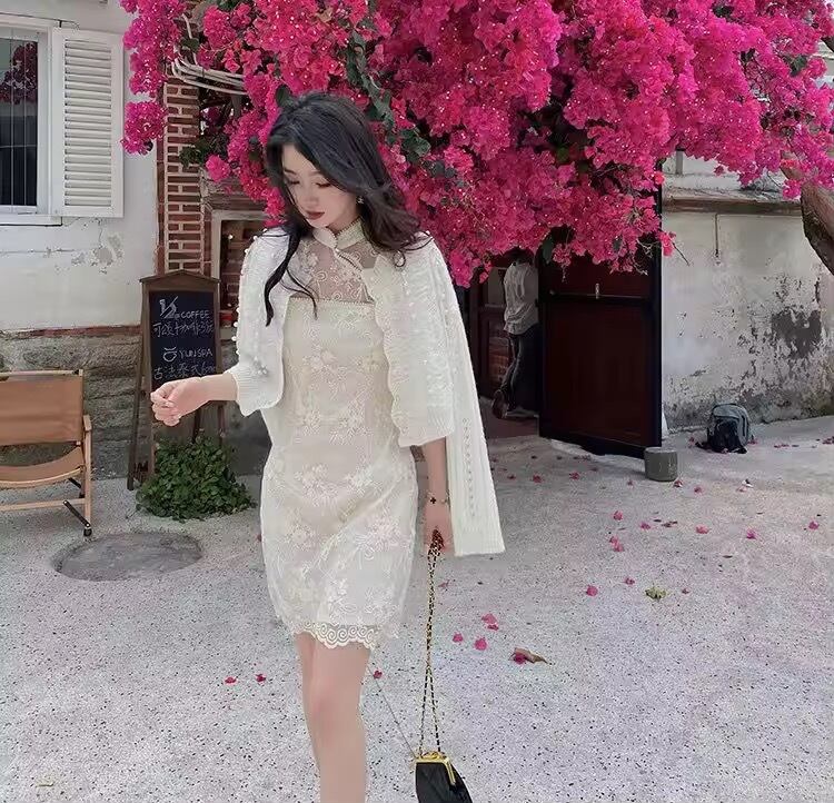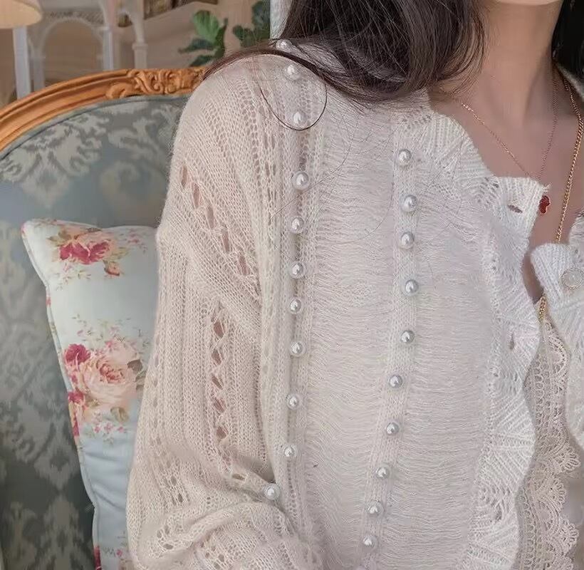 スカラップパールニットカーディガン(一ヶ月程でお届け)
