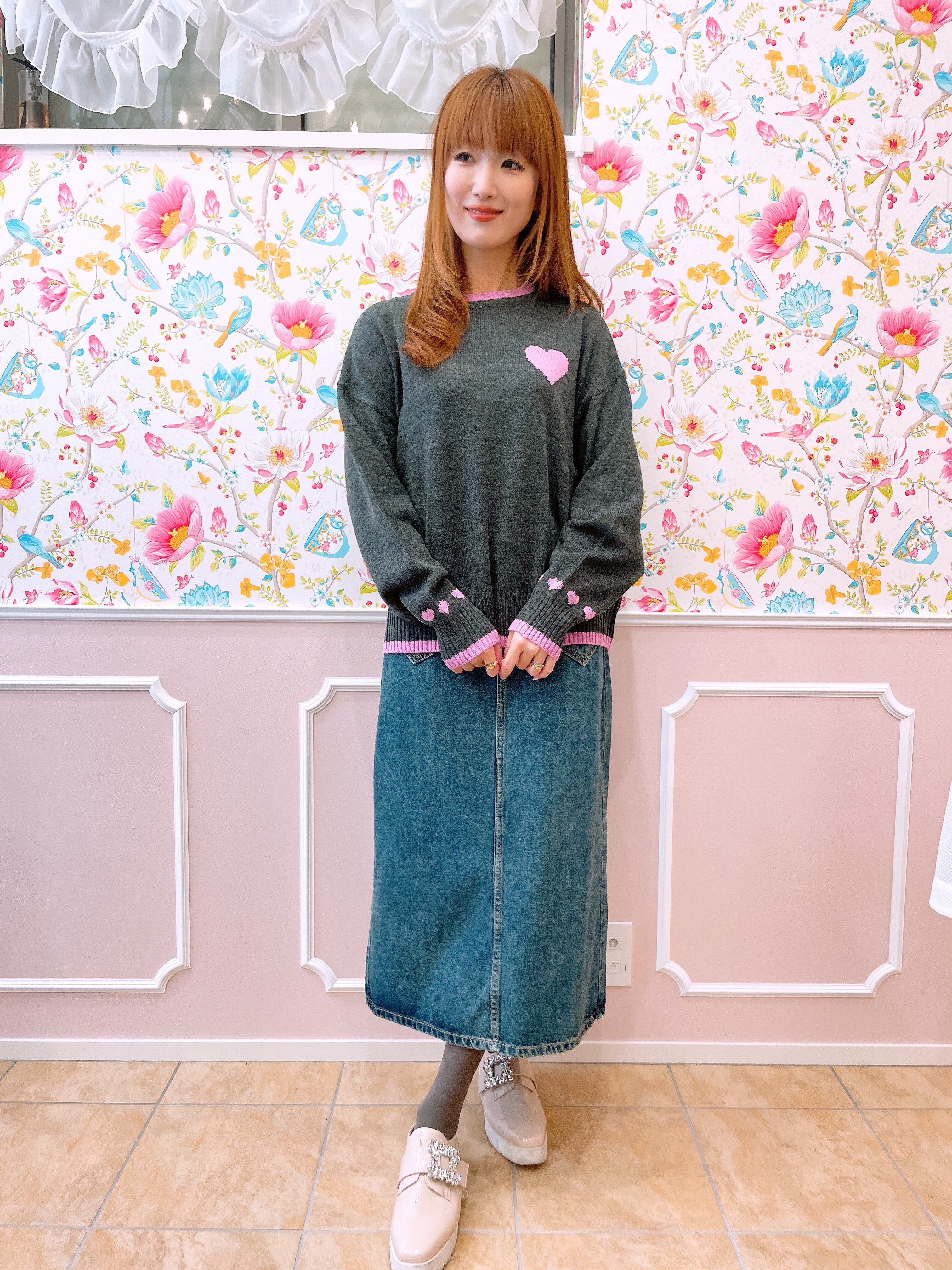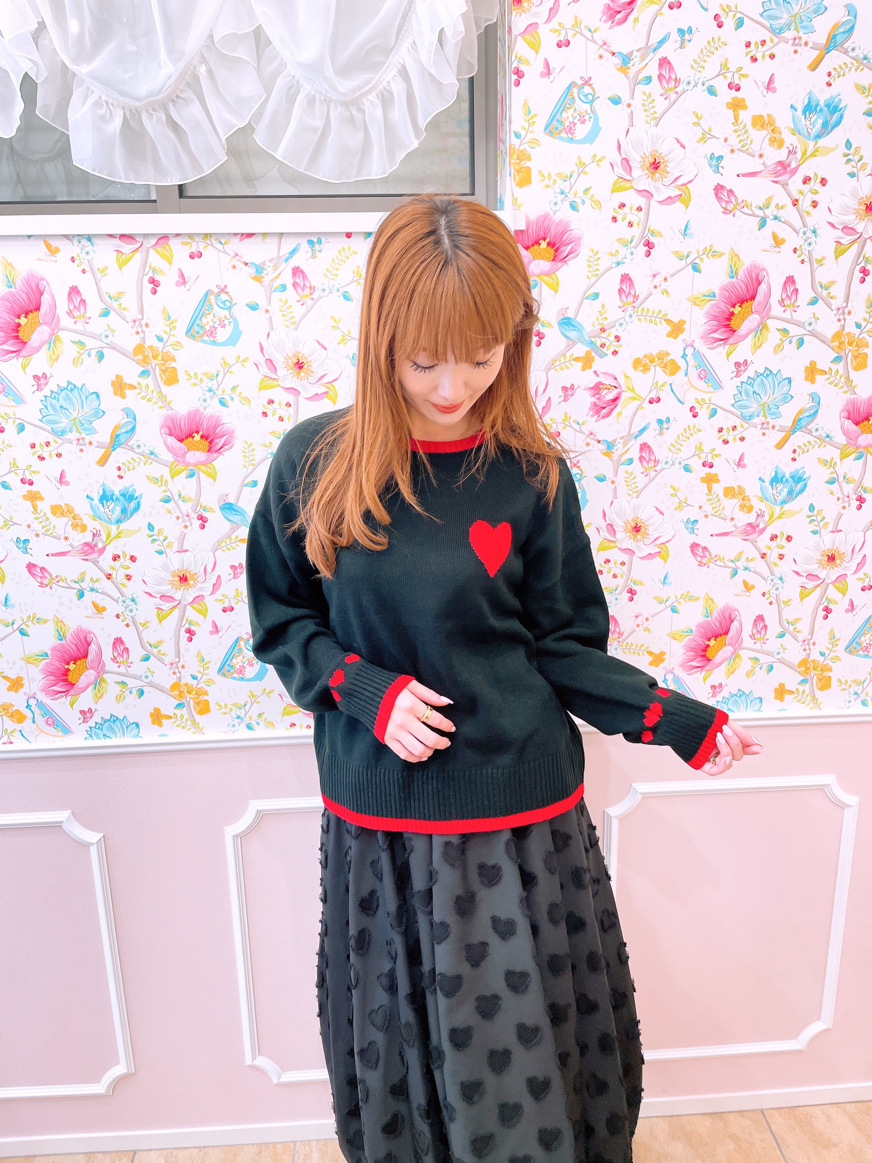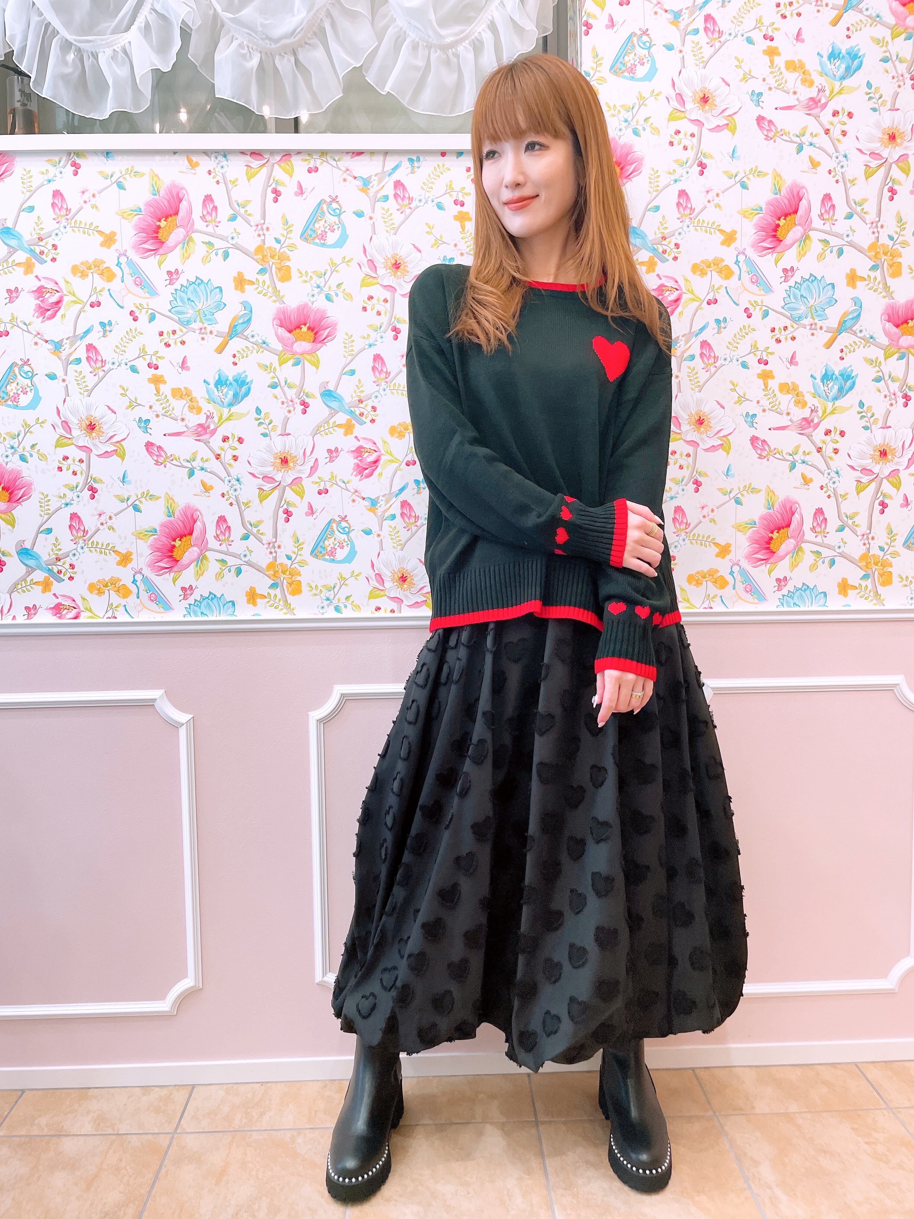 お袖のドットハートもアクセントとなり、秋冬コーデのポイントとしてもオススメなニットです。