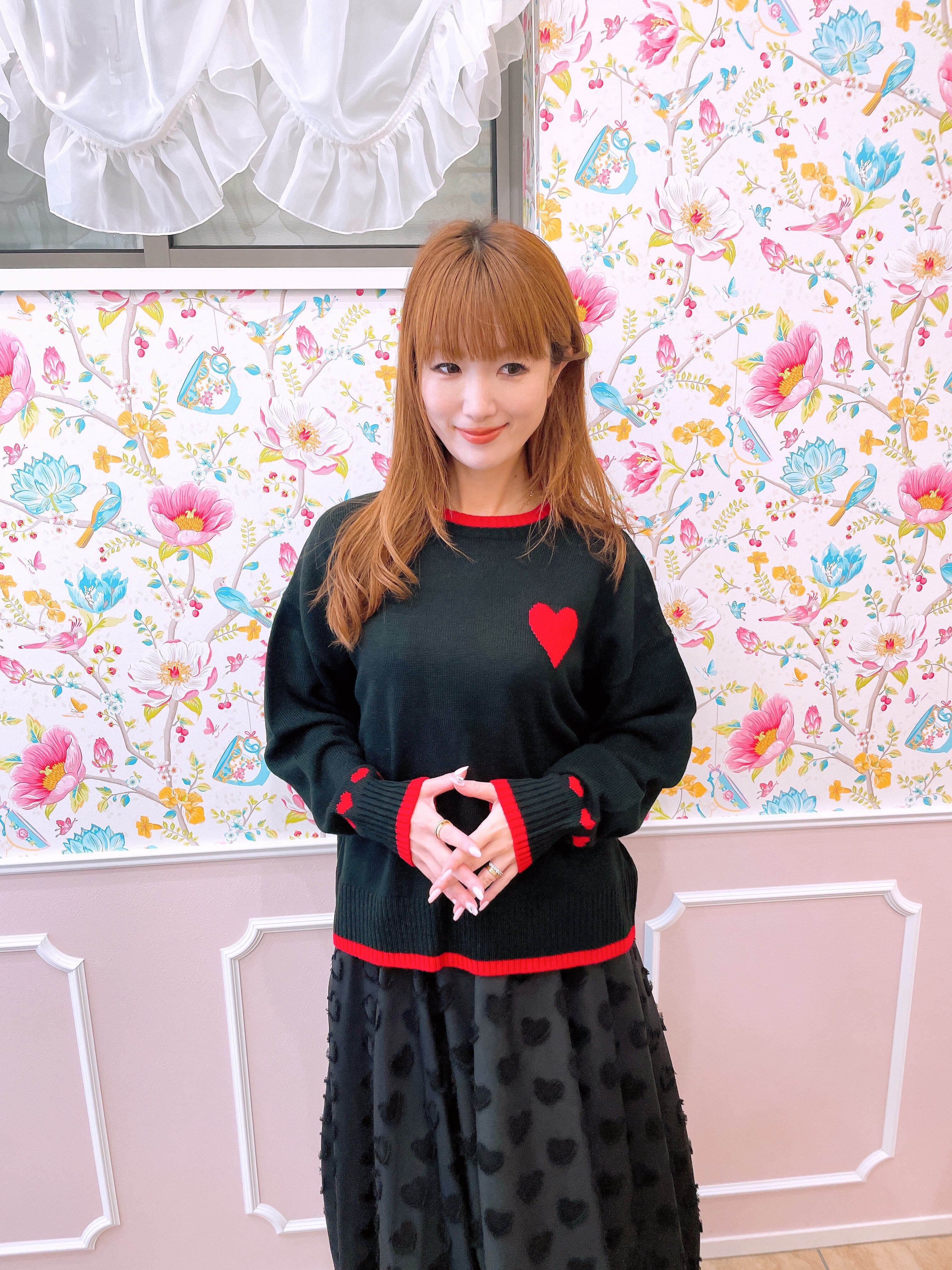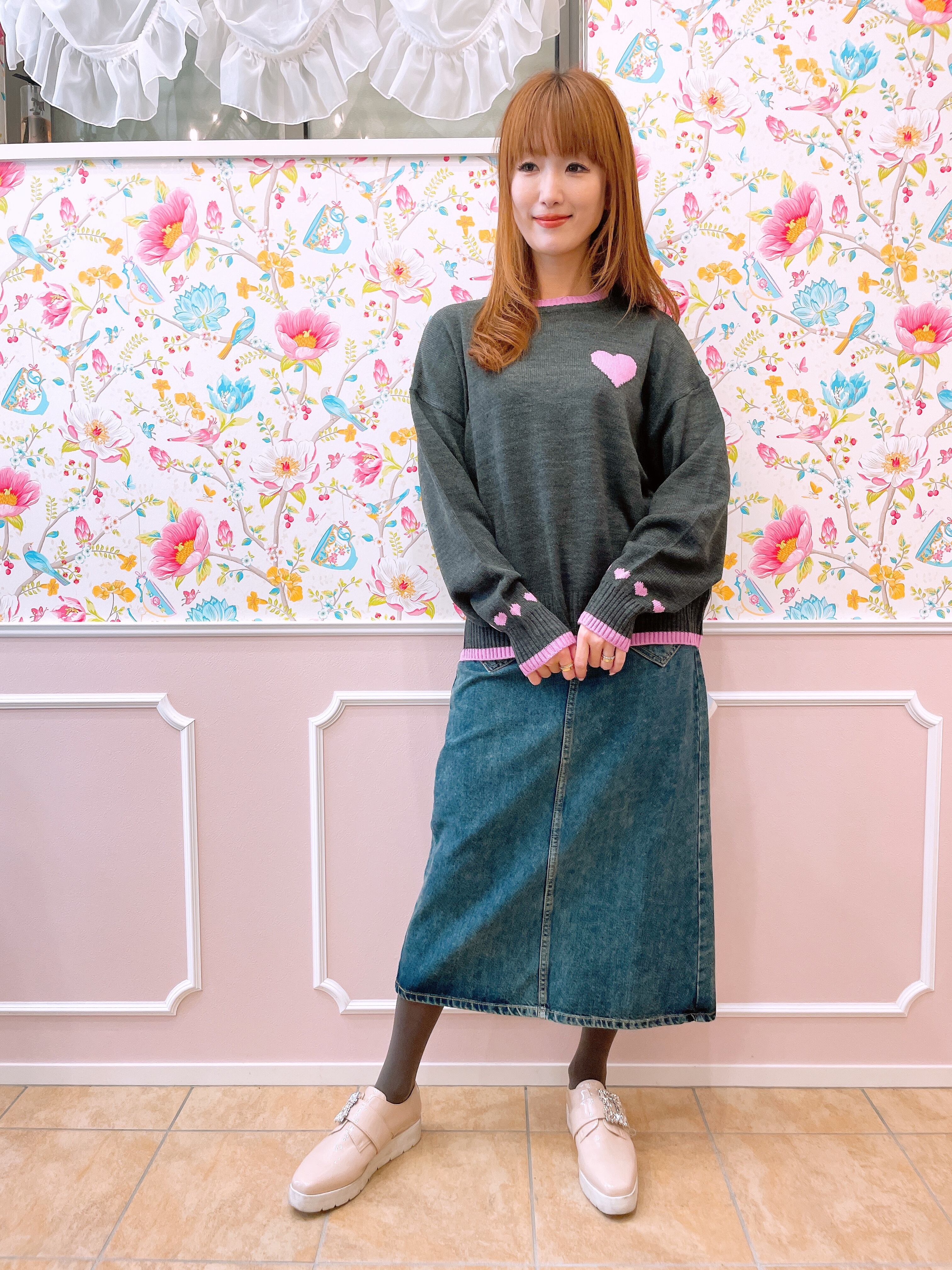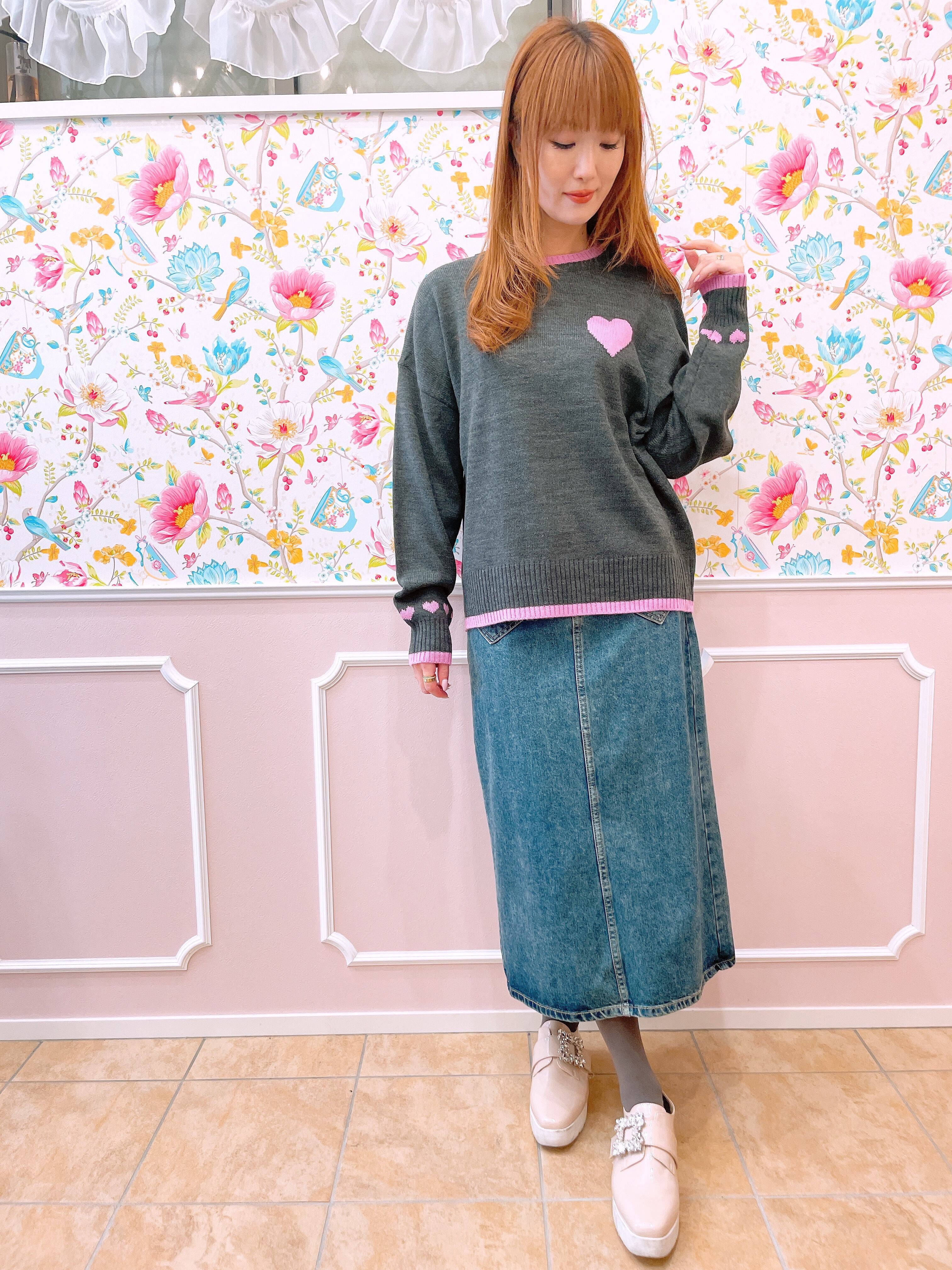 お袖のドットハートもアクセントとなり、秋冬コーデのポイントとしてもオススメなニットです。