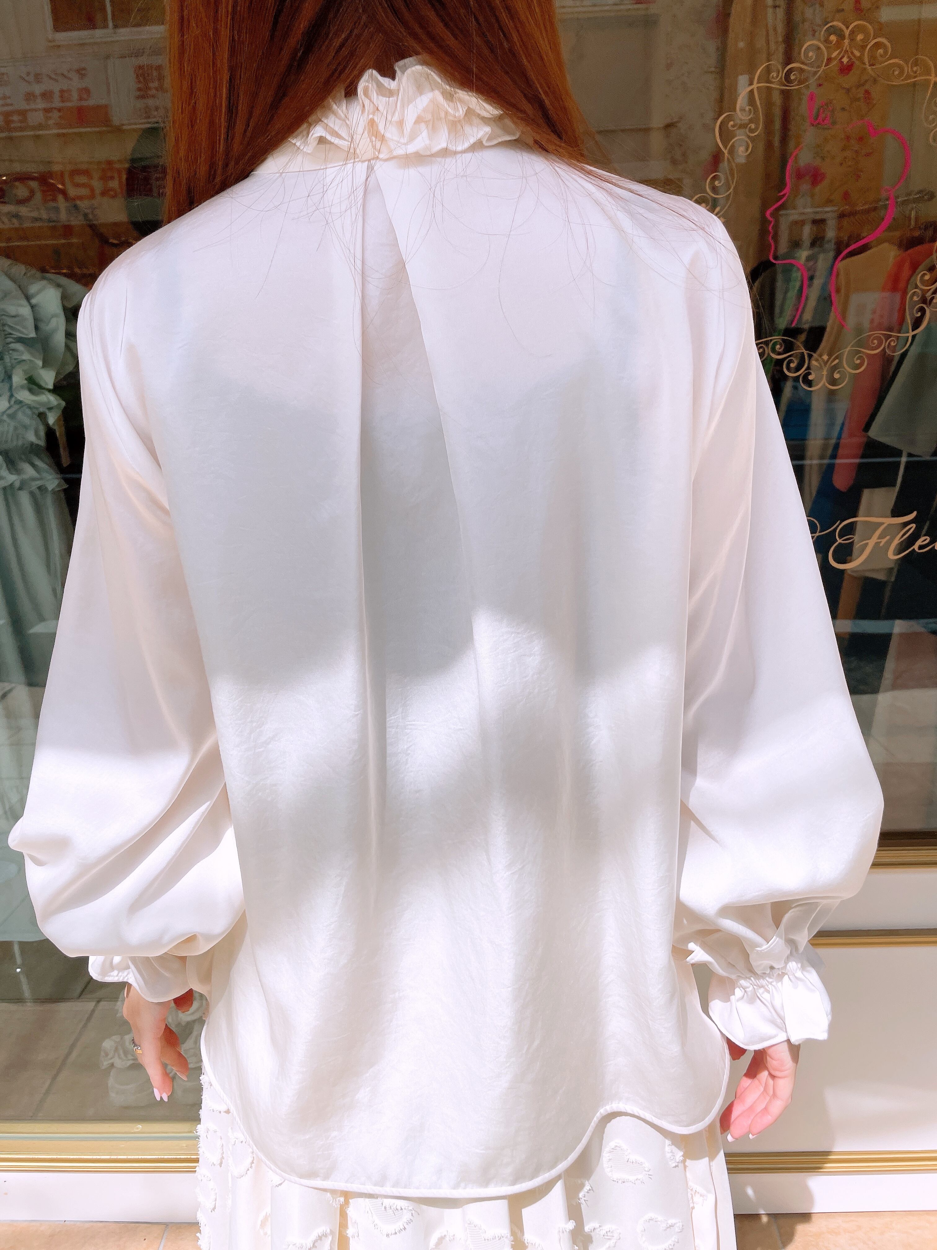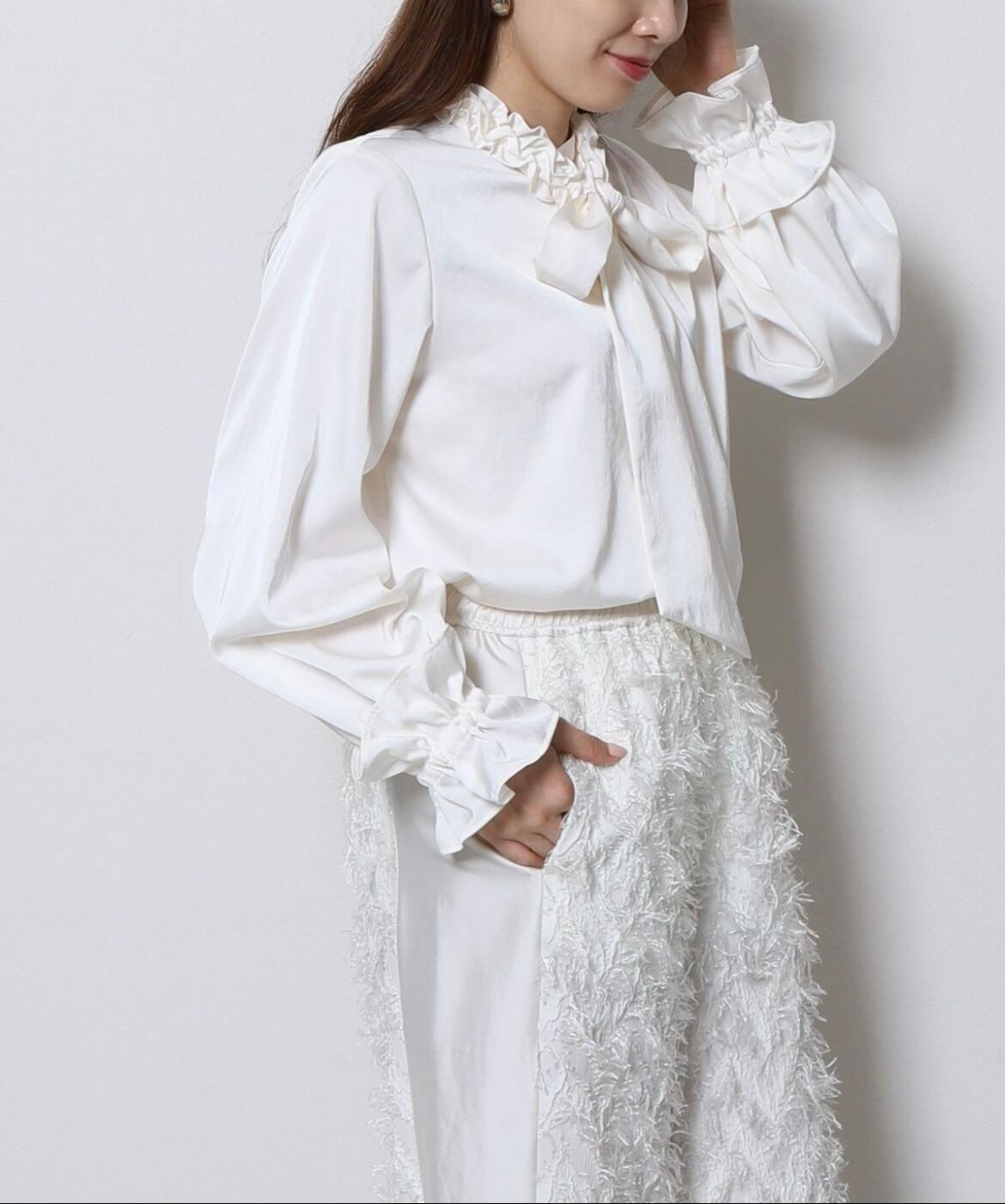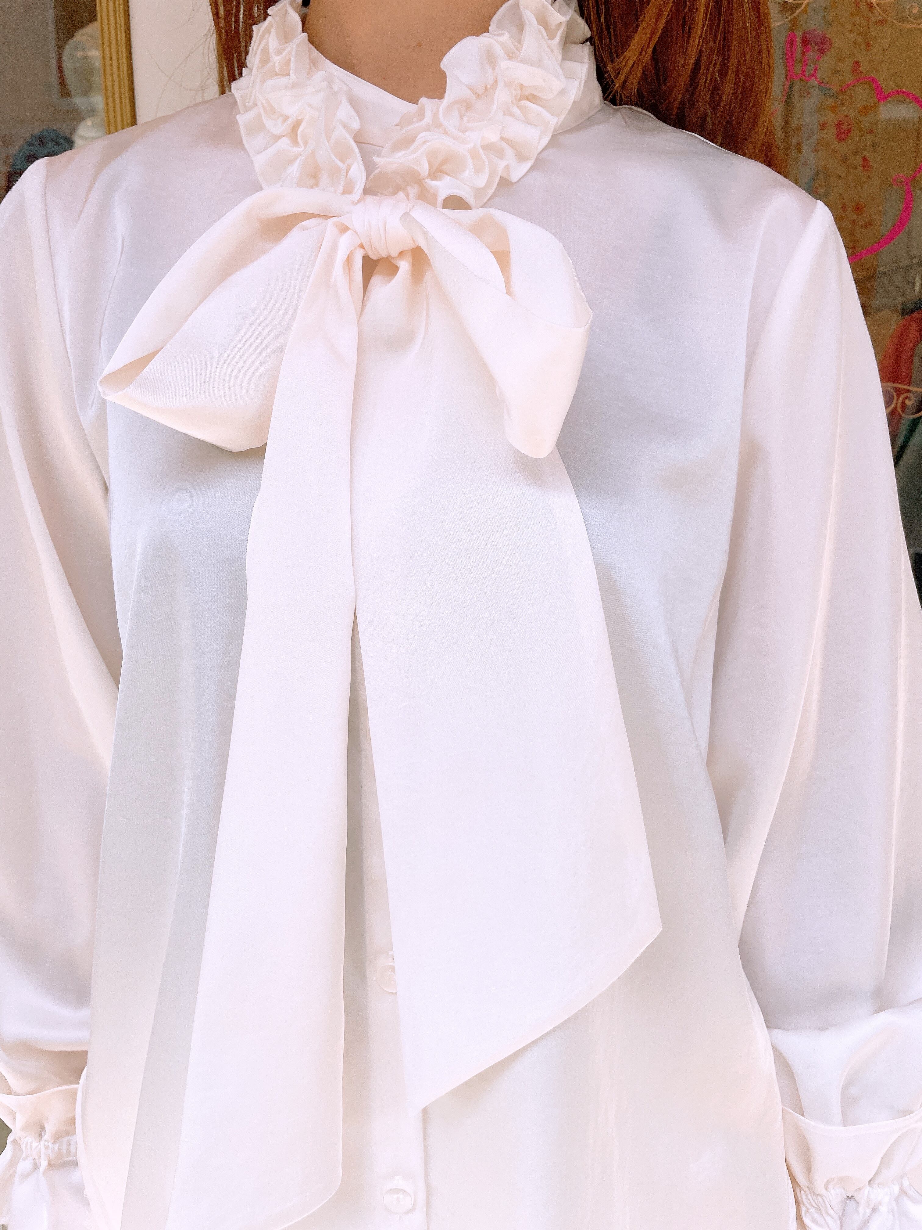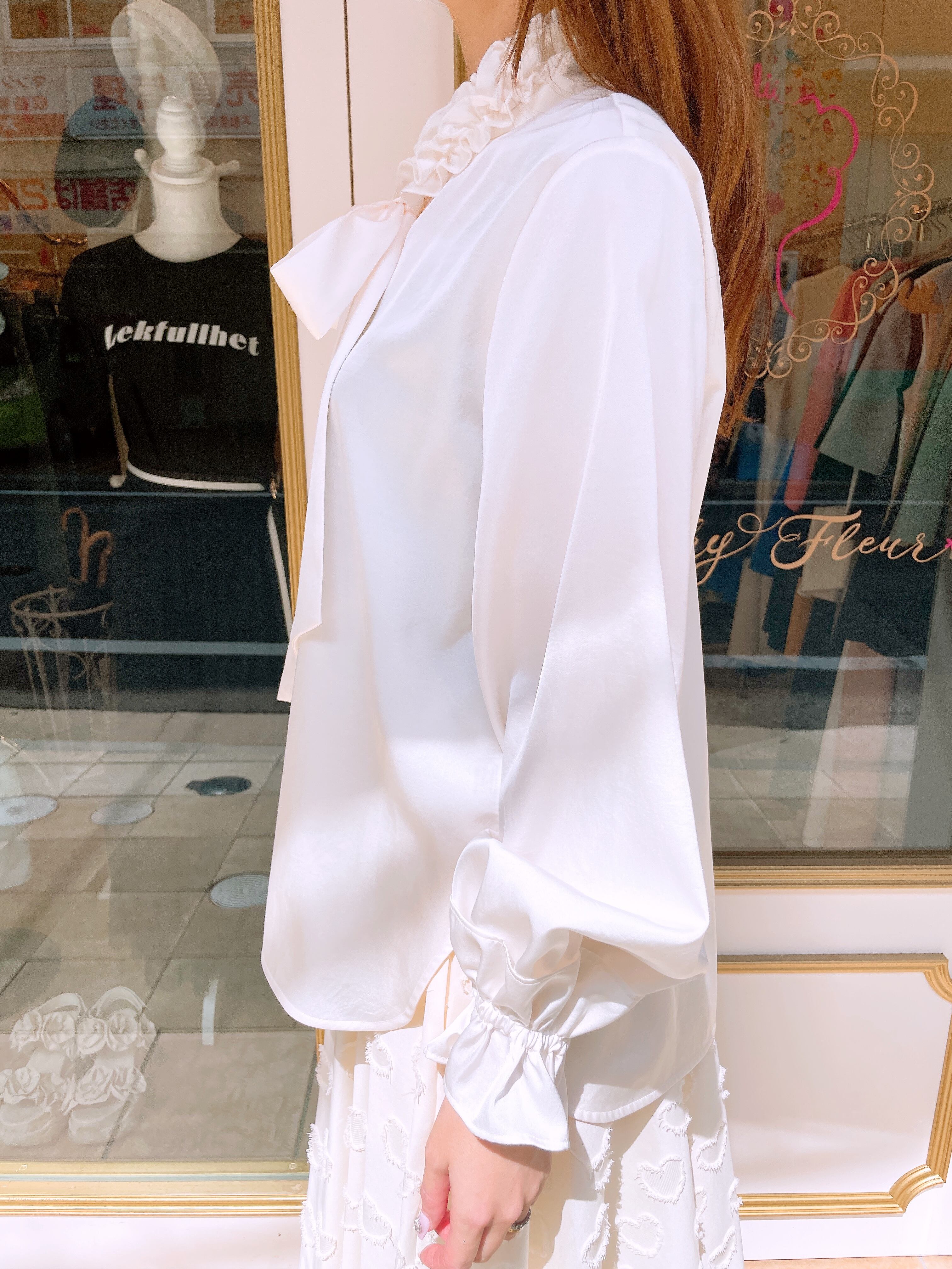 大きめなリボンにフリルのタイが素敵なブラウス。