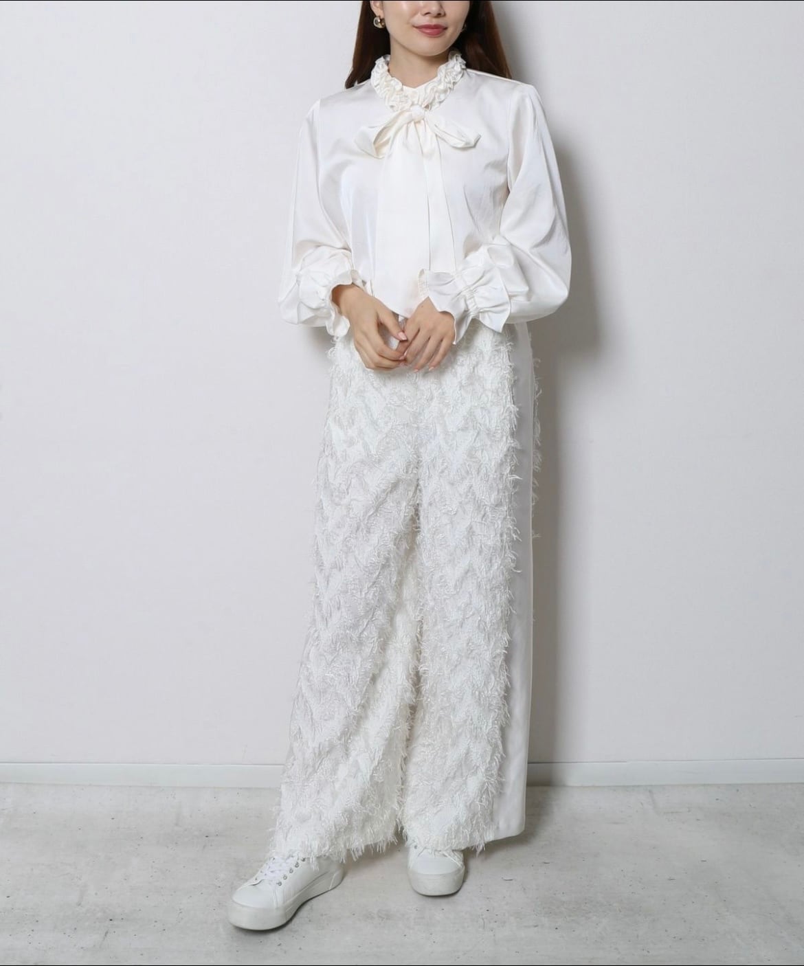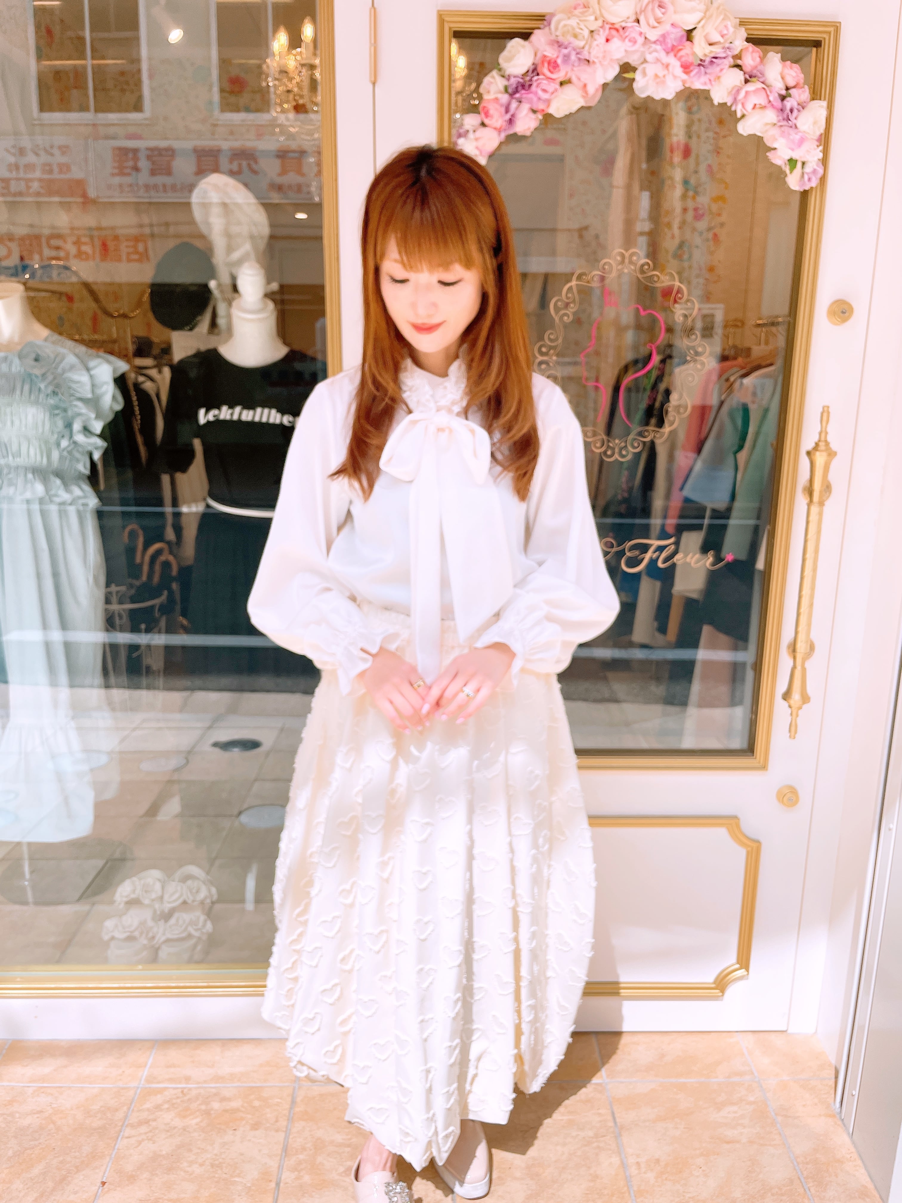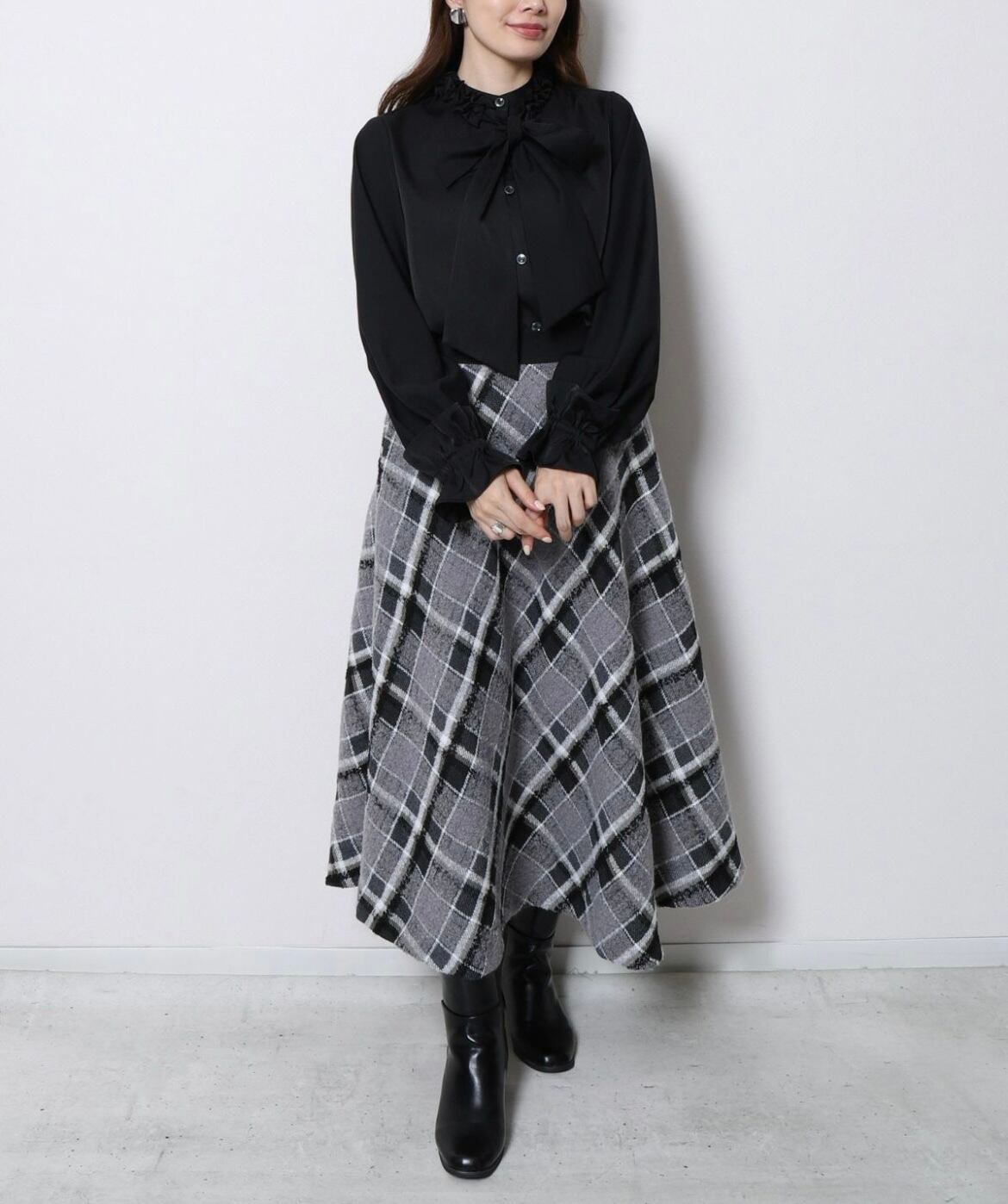 大きめなリボンにフリルのタイが素敵なブラウス。