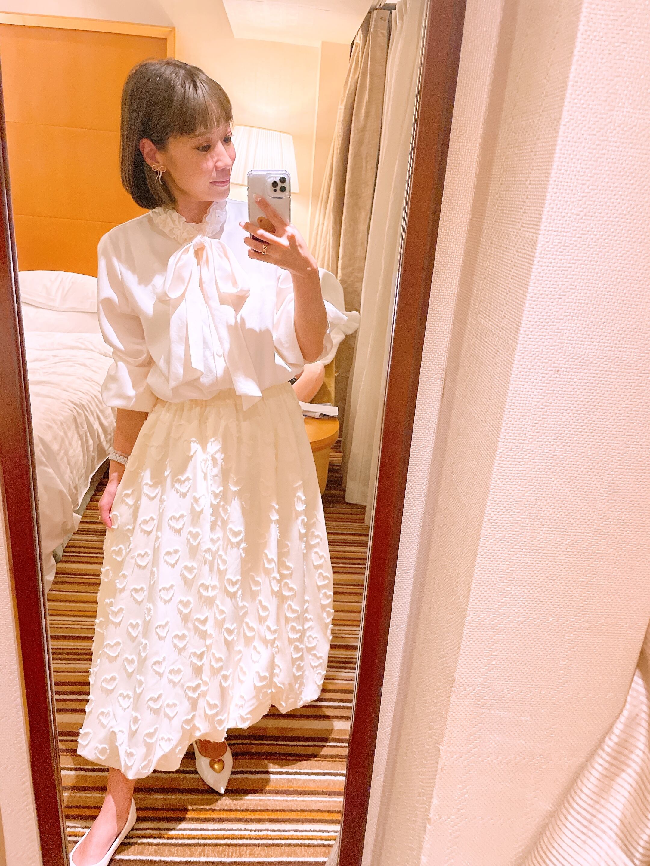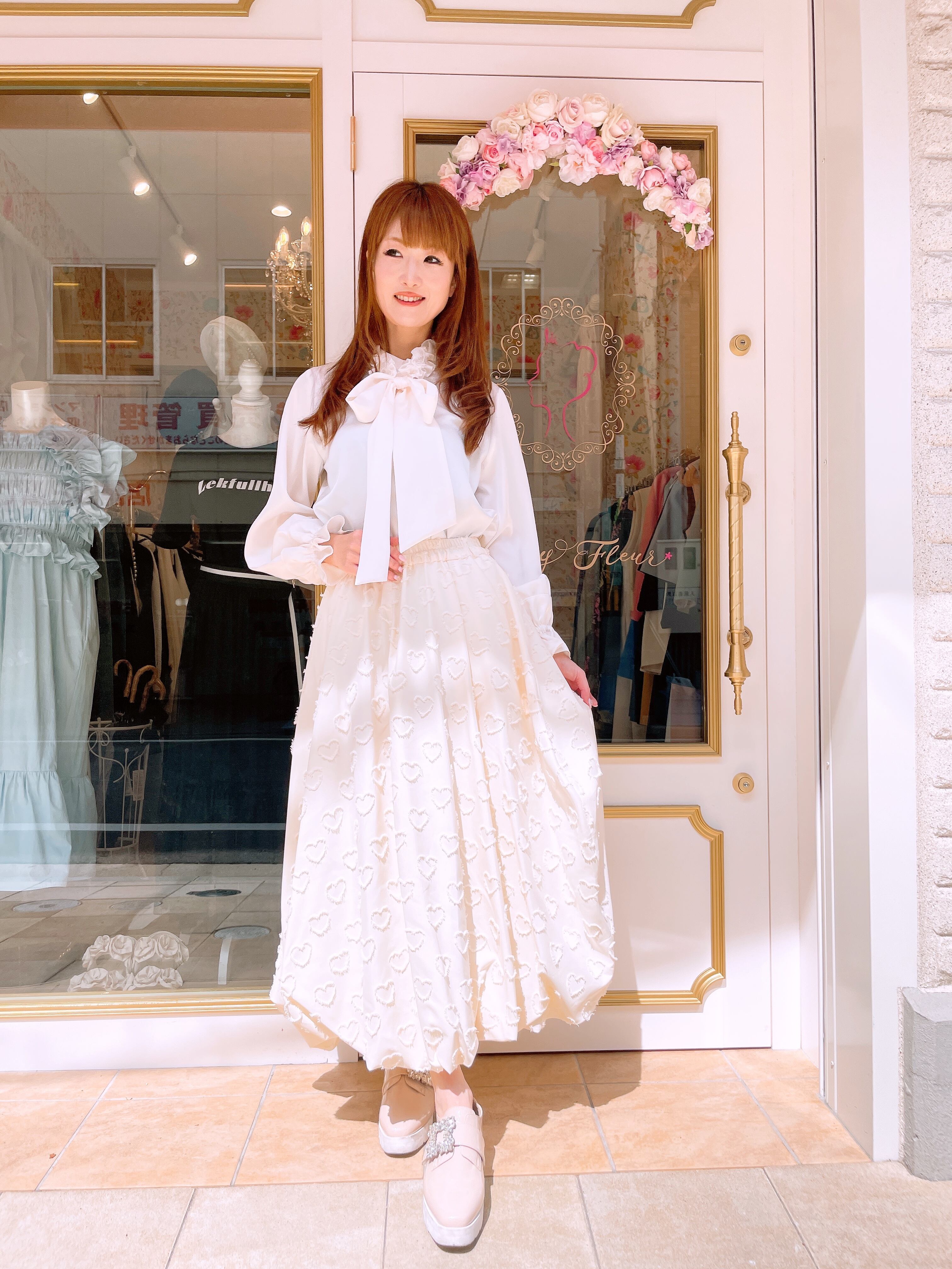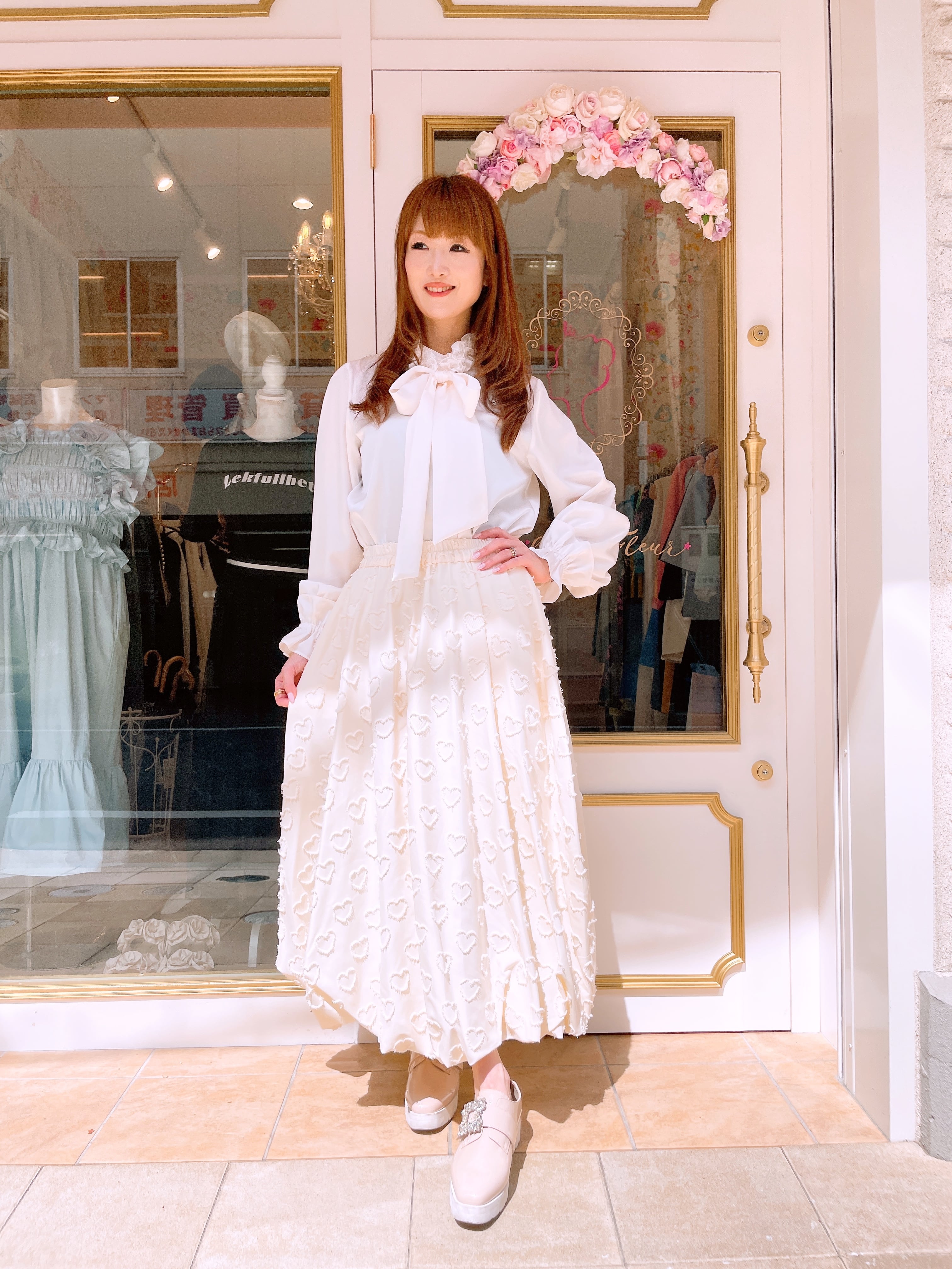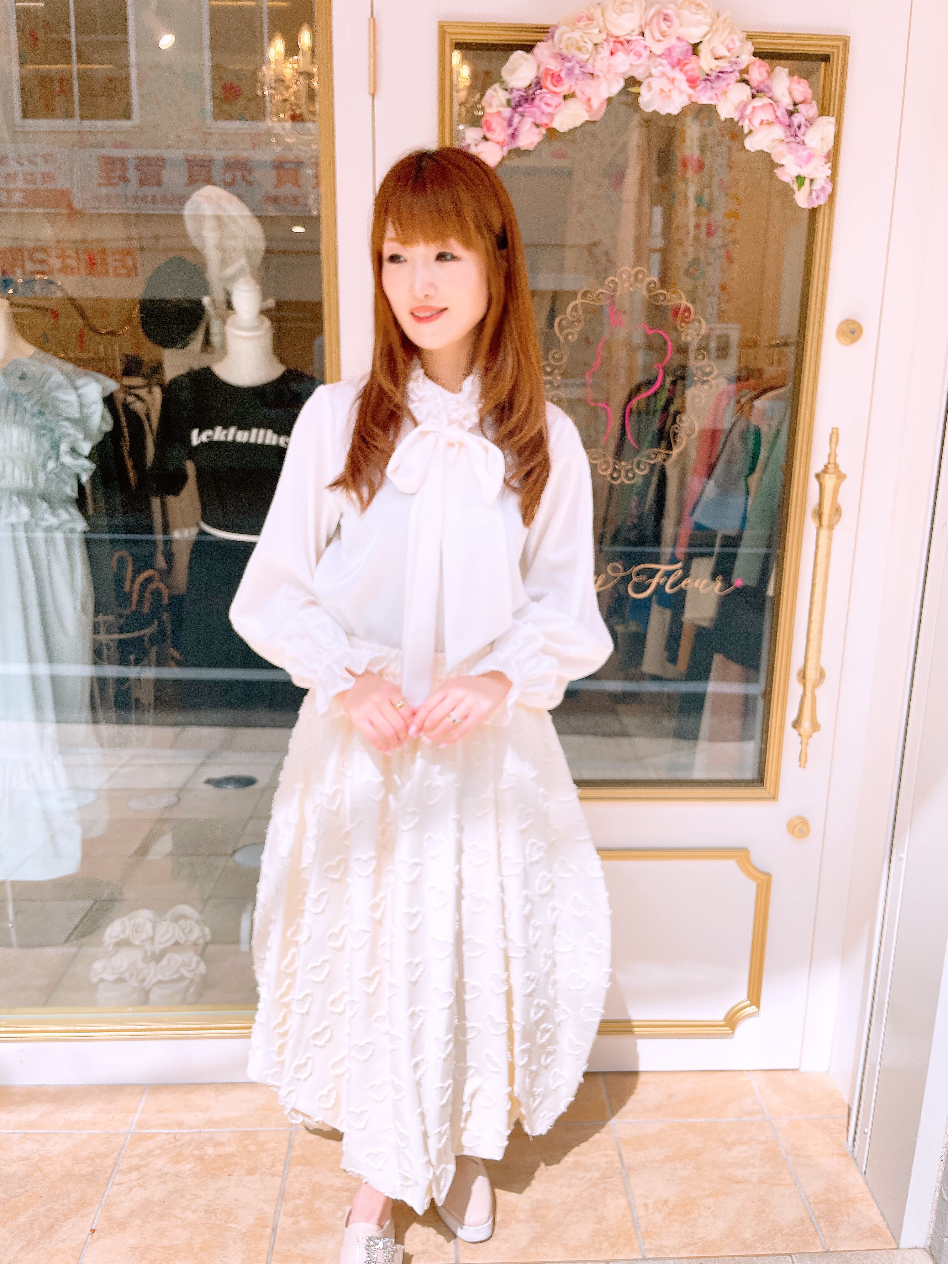 大きめなリボンにフリルのタイが素敵なブラウス。