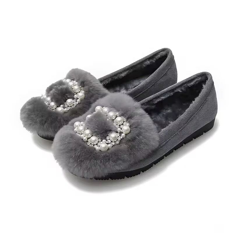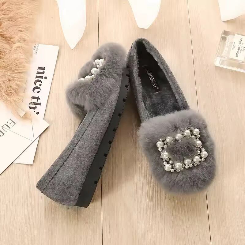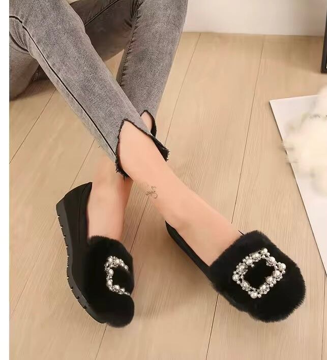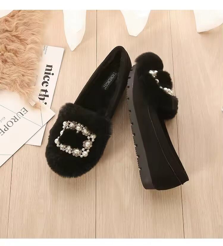 スクエアパールビジューファーローファー(一ヶ月程でお届け)