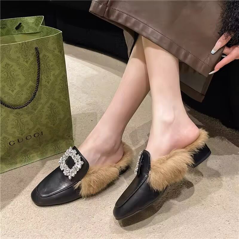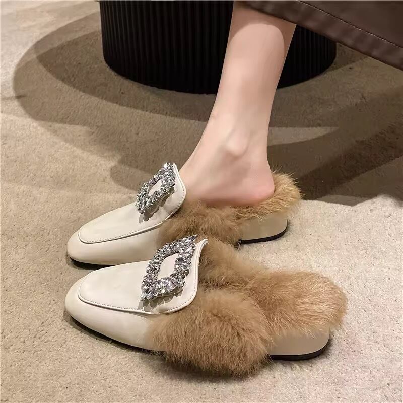 スクエアビジューファーローファー(一ヶ月程でお届け)