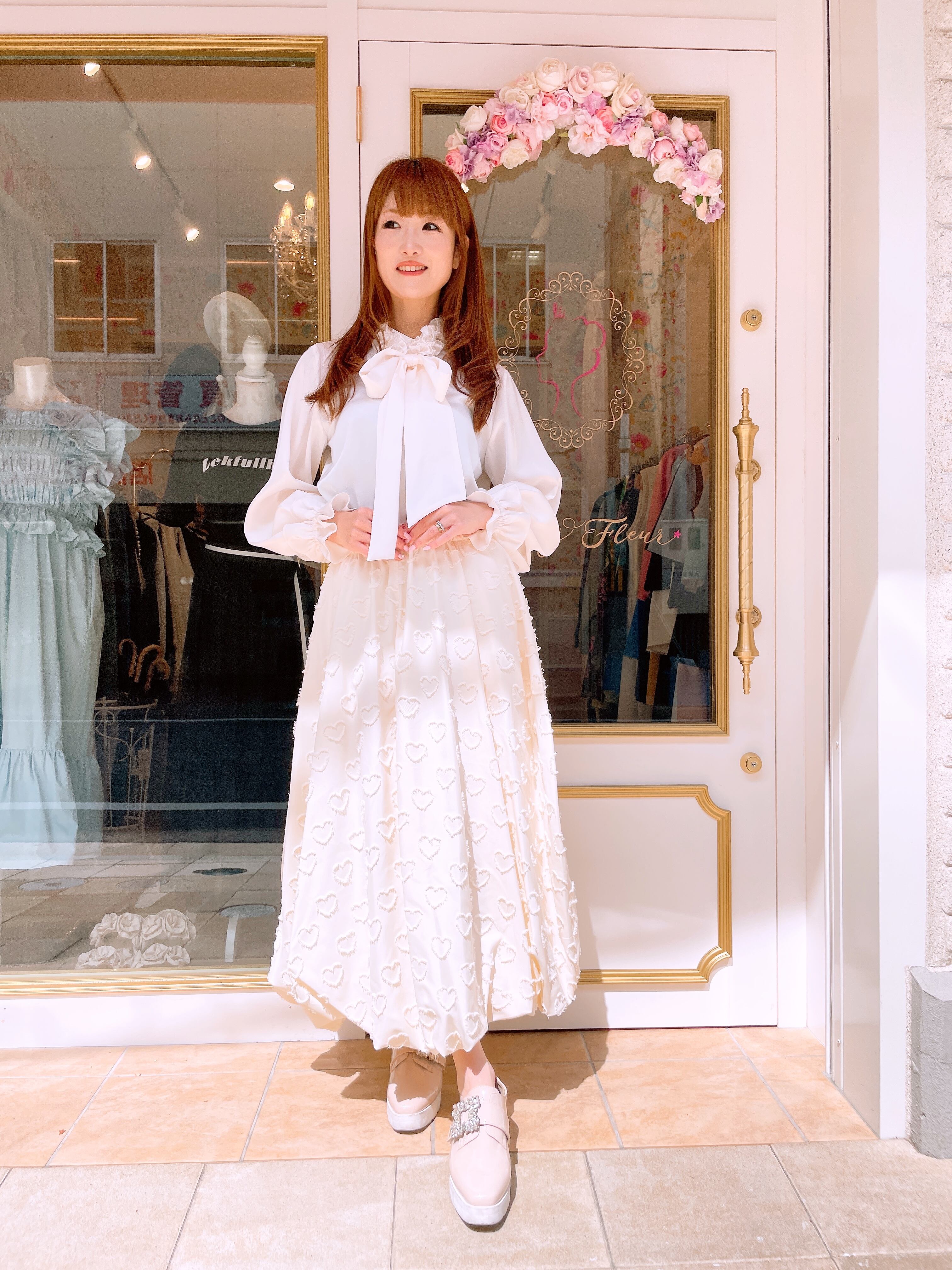 立体感あるハートジャガードお素材に裾部分はバルーンデザインがアクセントに。