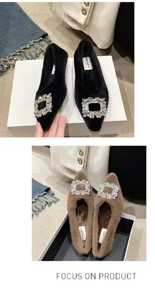 スクエアビジューファーパンプス(一ヶ月程でお届け)