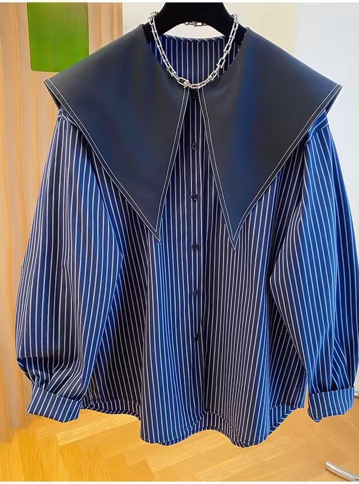 セーラービッグカラーストライプシャツ(一ヶ月程でお届け)