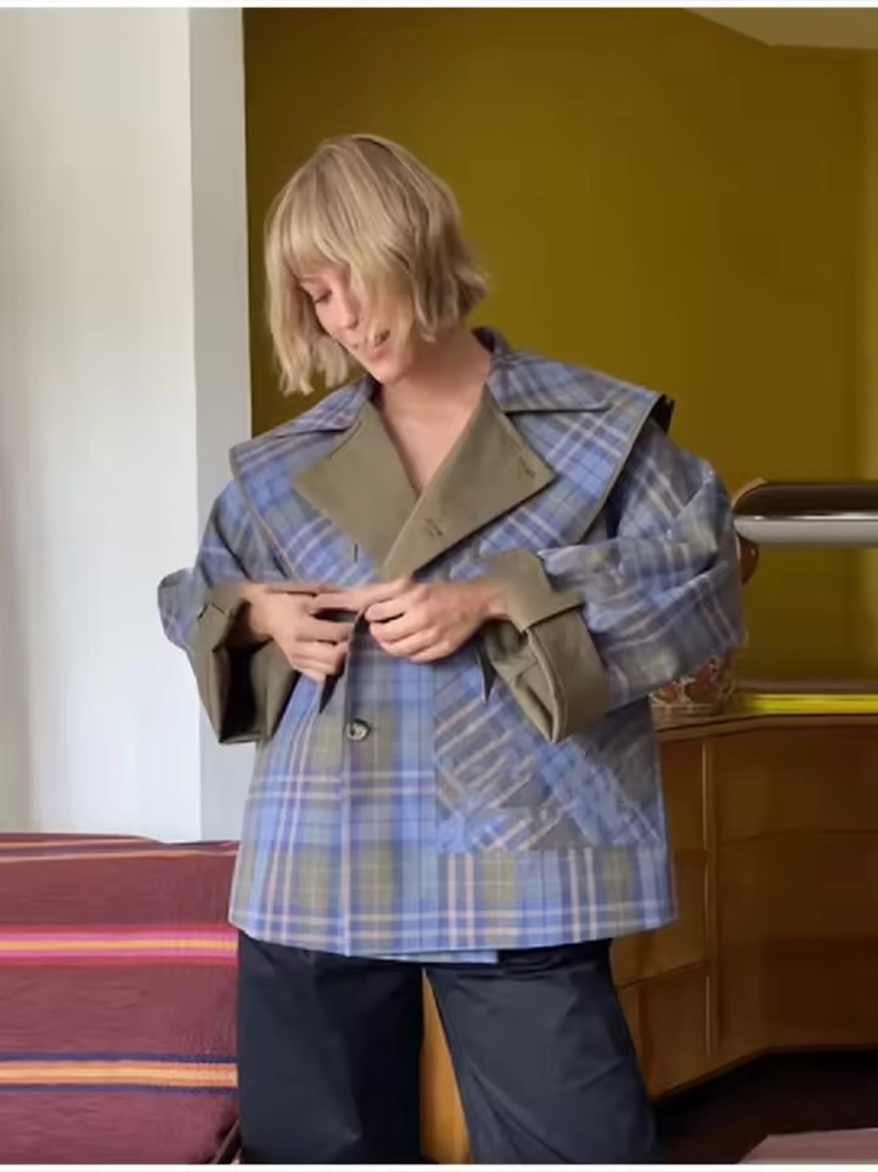 襟元もお好みにアレンジ出来て、お袖のチェックをアクセントにも。