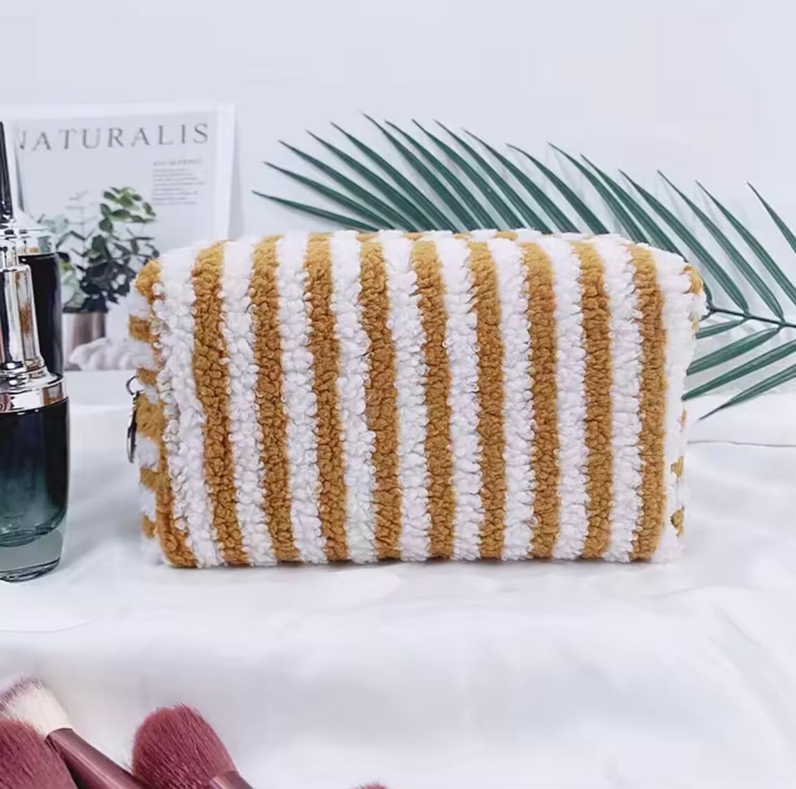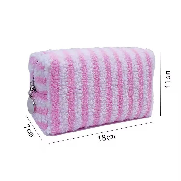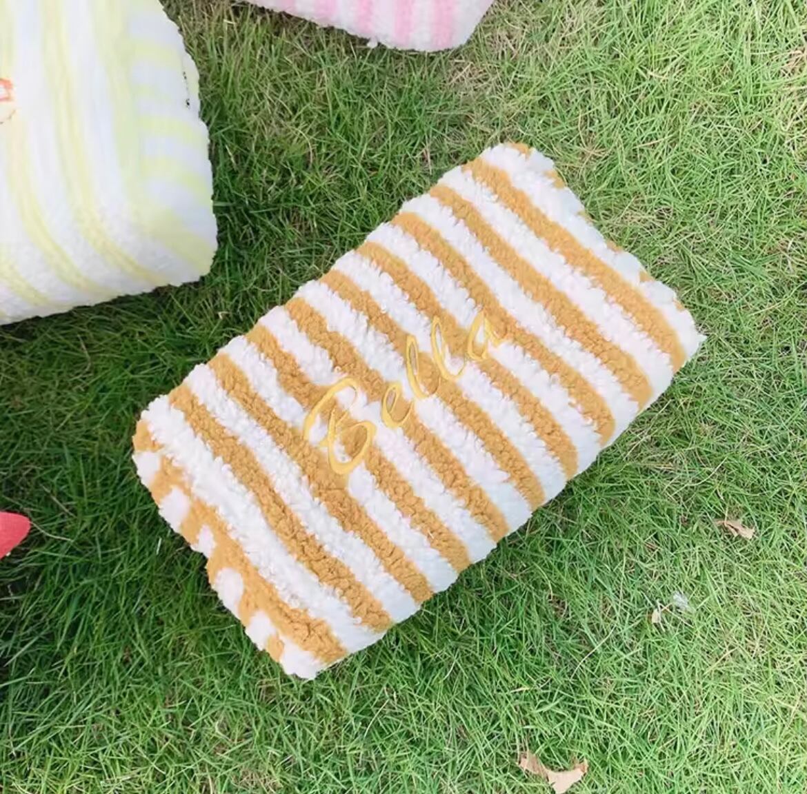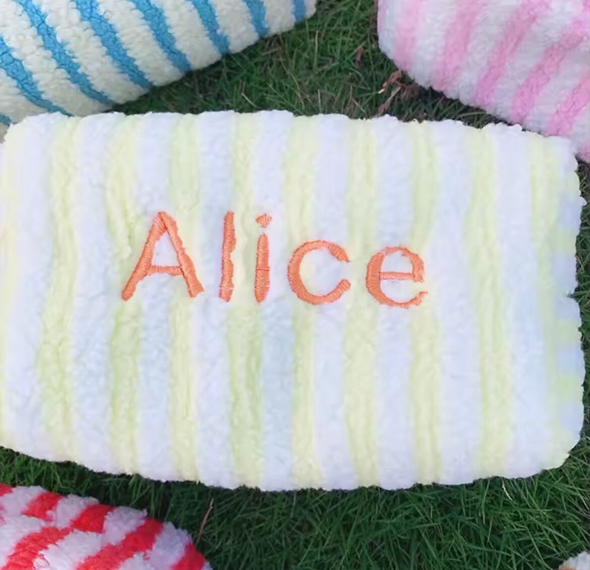 ネームカスタマイズストライプパイル地ポーチ サイズS (一ヶ月程でお届け)
