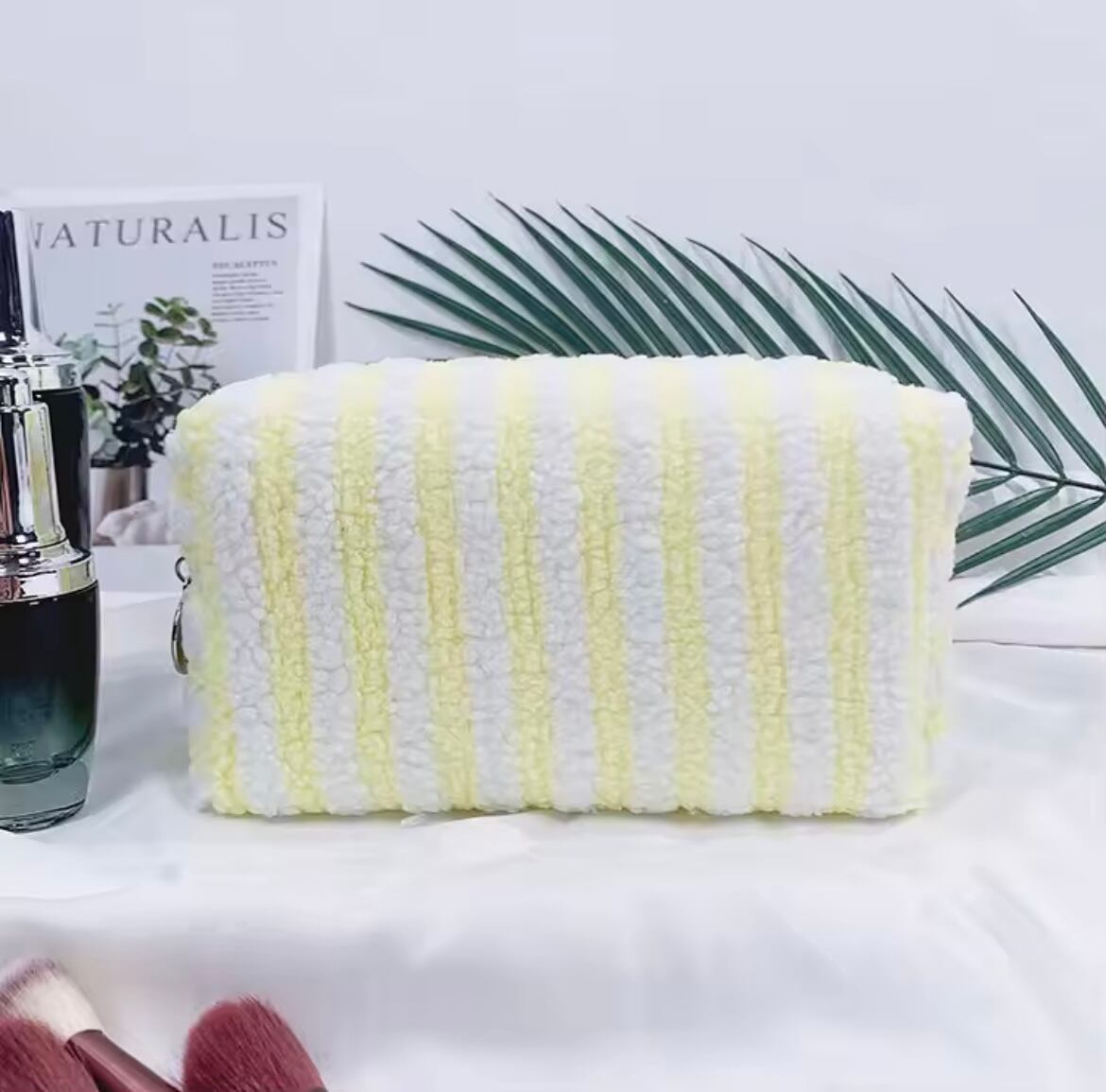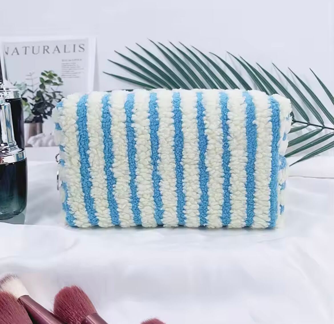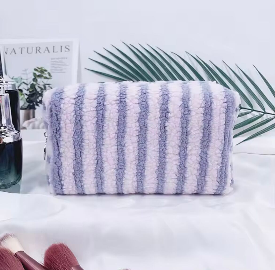 ネームカスタマイズストライプパイル地ポーチ サイズS (一ヶ月程でお届け)